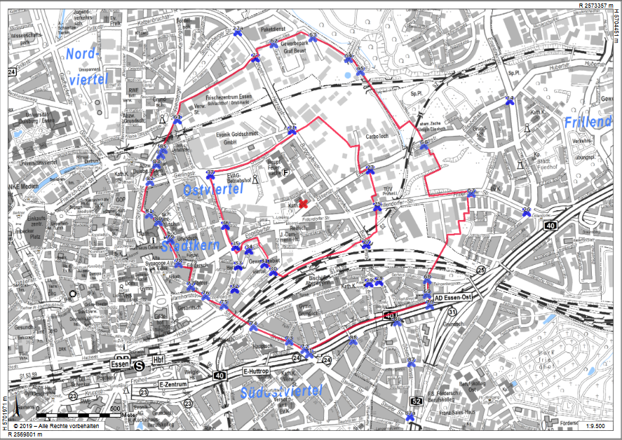 17:36 Uhr: Bei der Bahn sind die Strecken und Züge zwischen Essen-Hbf und Essen-Steele, Essen – Gelsenkirchen, Essen – Bochum betroffen. Die Züge müssen für die Dauer Entschärfung entweder anhalten oder werden umgeleitet. Die S6 ist nicht betroffen, sie kann normal fahren. Auch einige Fernverkehrzüge sind beeinträchtigt. Mehr Infos gibt es bei der Bahn.
