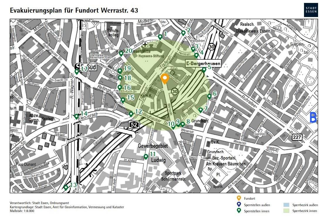 13:22 Uhr: Von der Sprengung werden auch der Straßenverkehr sowie der ÖPNV betroffen sein. Die A52 muss für kurze Zeit gesperrt werden. Wie genau wird gerade noch im Krisenstab der Stadt besprochen.
