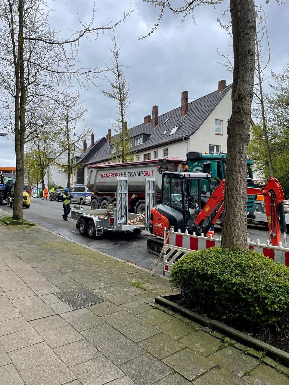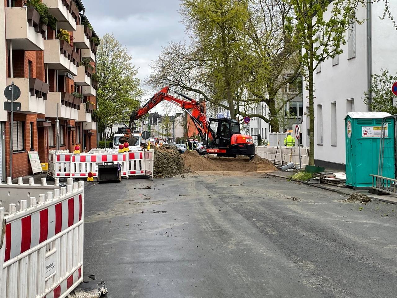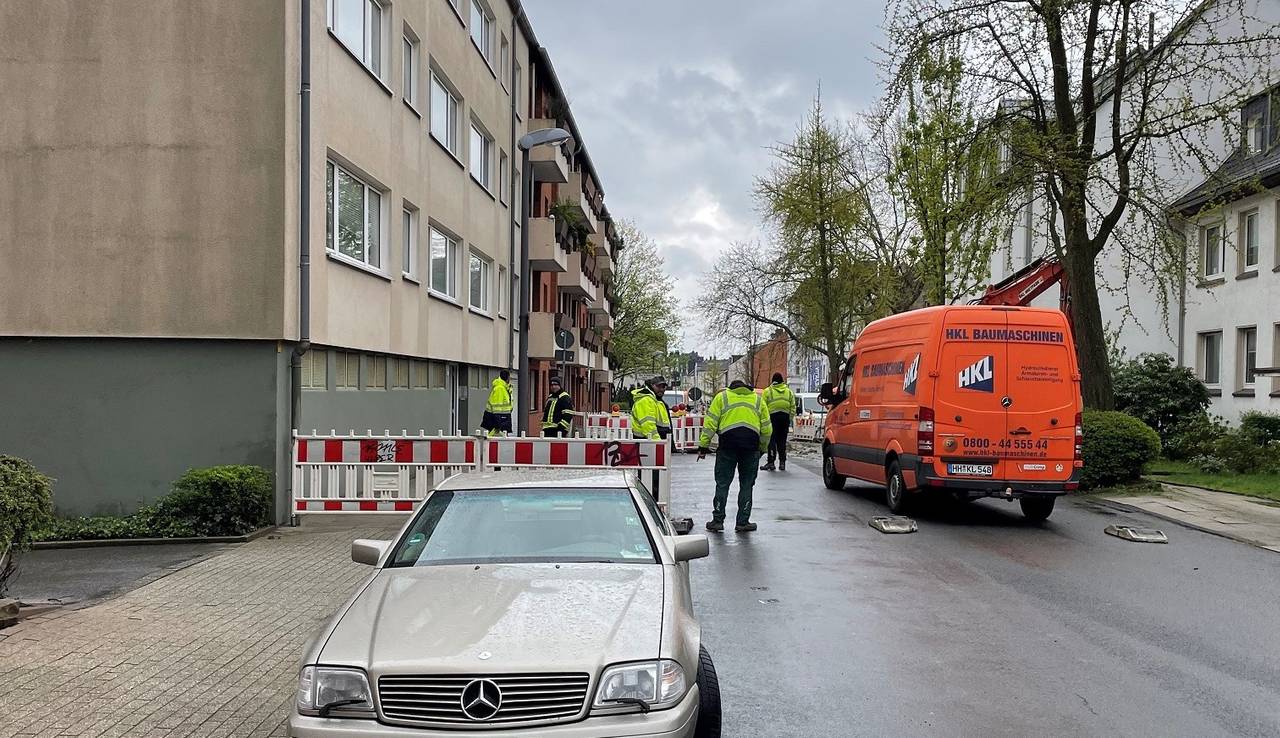 14:53 Uhr: Bevor es mit der Sprengung losgehen kann, müssen einige Versorgungsleitungen in der Werrastraße abgeklemmt werden. Dazu wird die Straße an zwei Stellen aufgerissen.