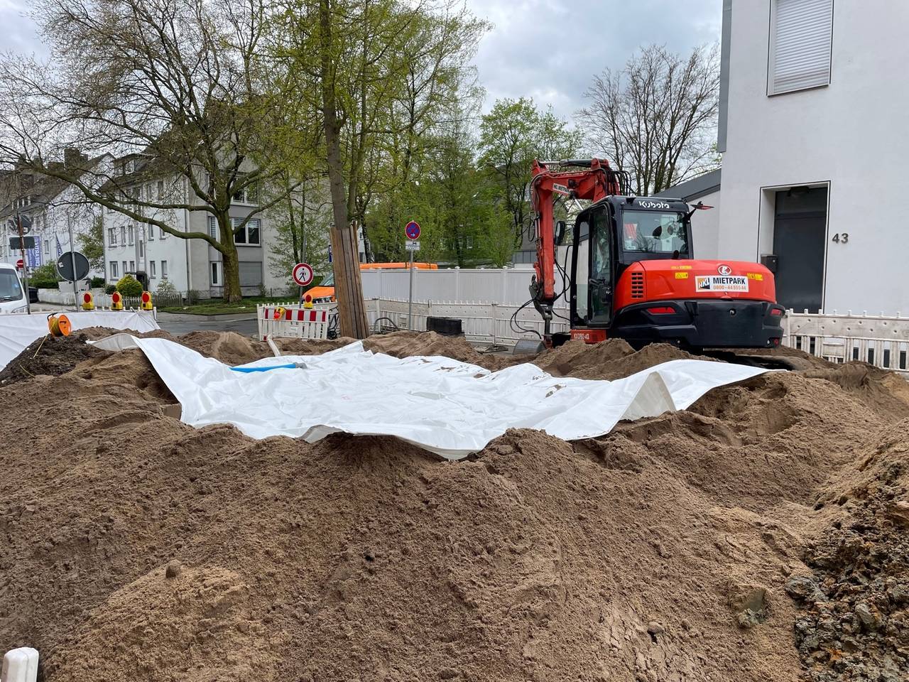 15:20 Uhr: Damit die Werrastraße an zwei Stellen aufgerissen und auch der Sand angeliefert werden kann, müssen die parkenden Autos in der Straße weggefahren werden.