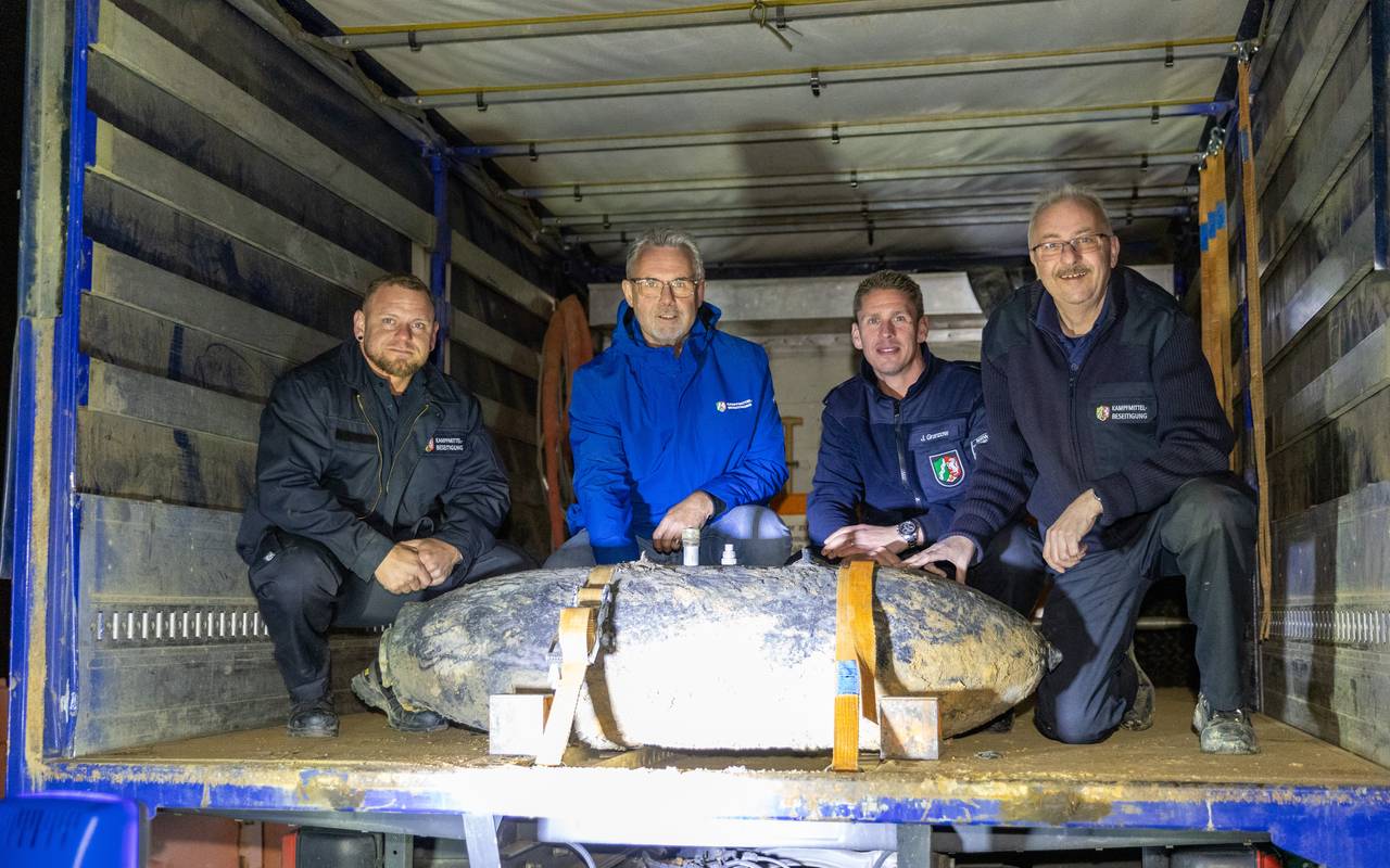 14:03 Uhr: Der Blindgänger liegt frei, aber 3,50 Meter tief in der Erde.