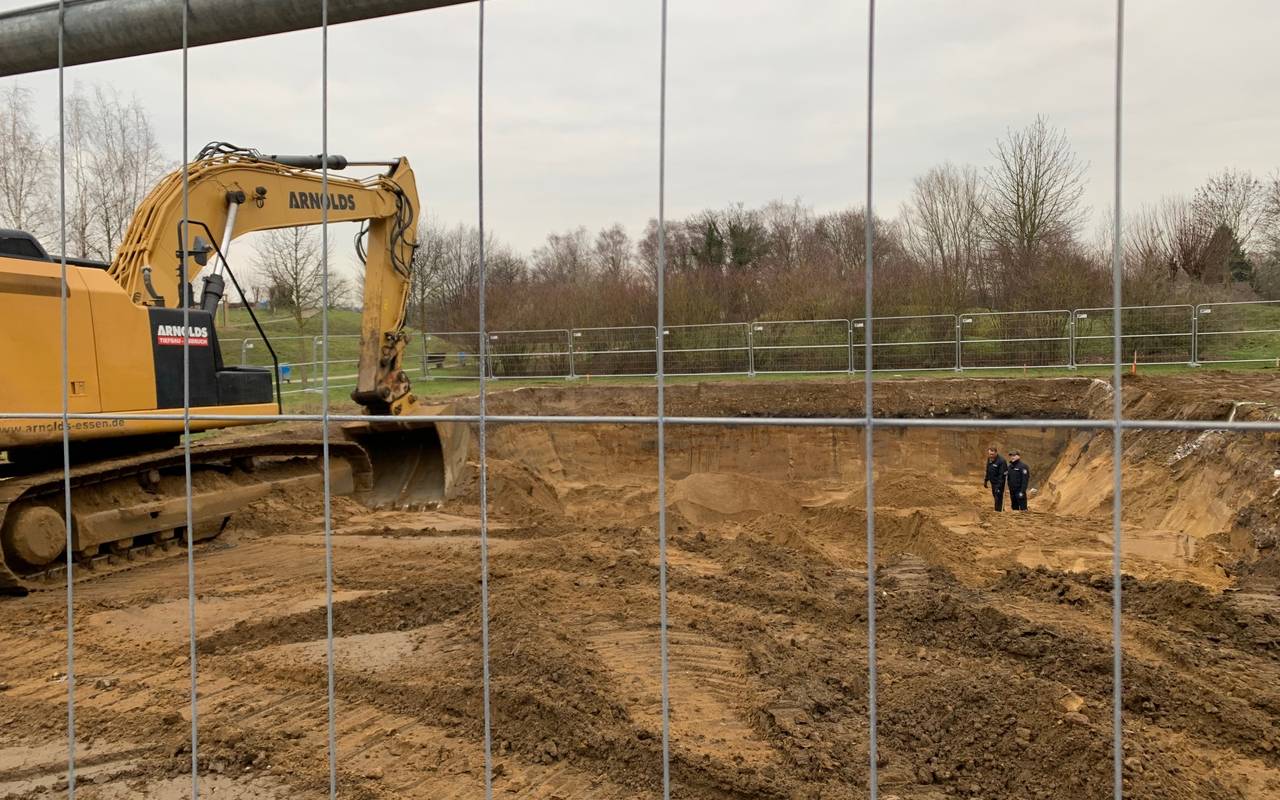 11:07 Uhr: Der erste Evakuierungs-Durchgang ist nun beendet und die Sperrstellen werden zugezogen. Das Loch für den Blindgänger ist bereits fertig ausgegraben.