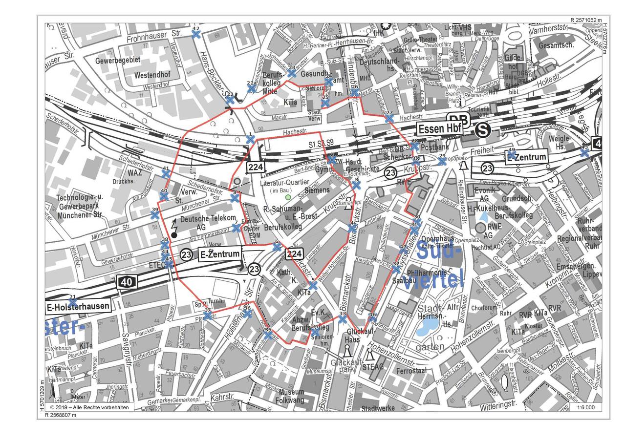 17:11 Uhr: Bei dem Fundort handelt es sich um das das Gelände, auf dem ehemals das WAZ-Gebäude stand. Im Gebäude gegenüber waren mal die Radio Essen-Studios. Auch das Arbeitsamt war in dem Bereich mal ansässig.