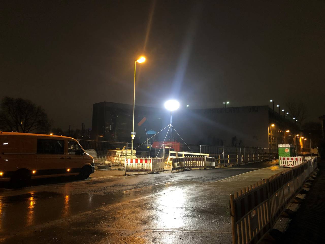 16:38 Uhr: Der erste Wagen mit Licht hat sich zum Fundort bewegt. So kann dort ausgeleuchtet werden