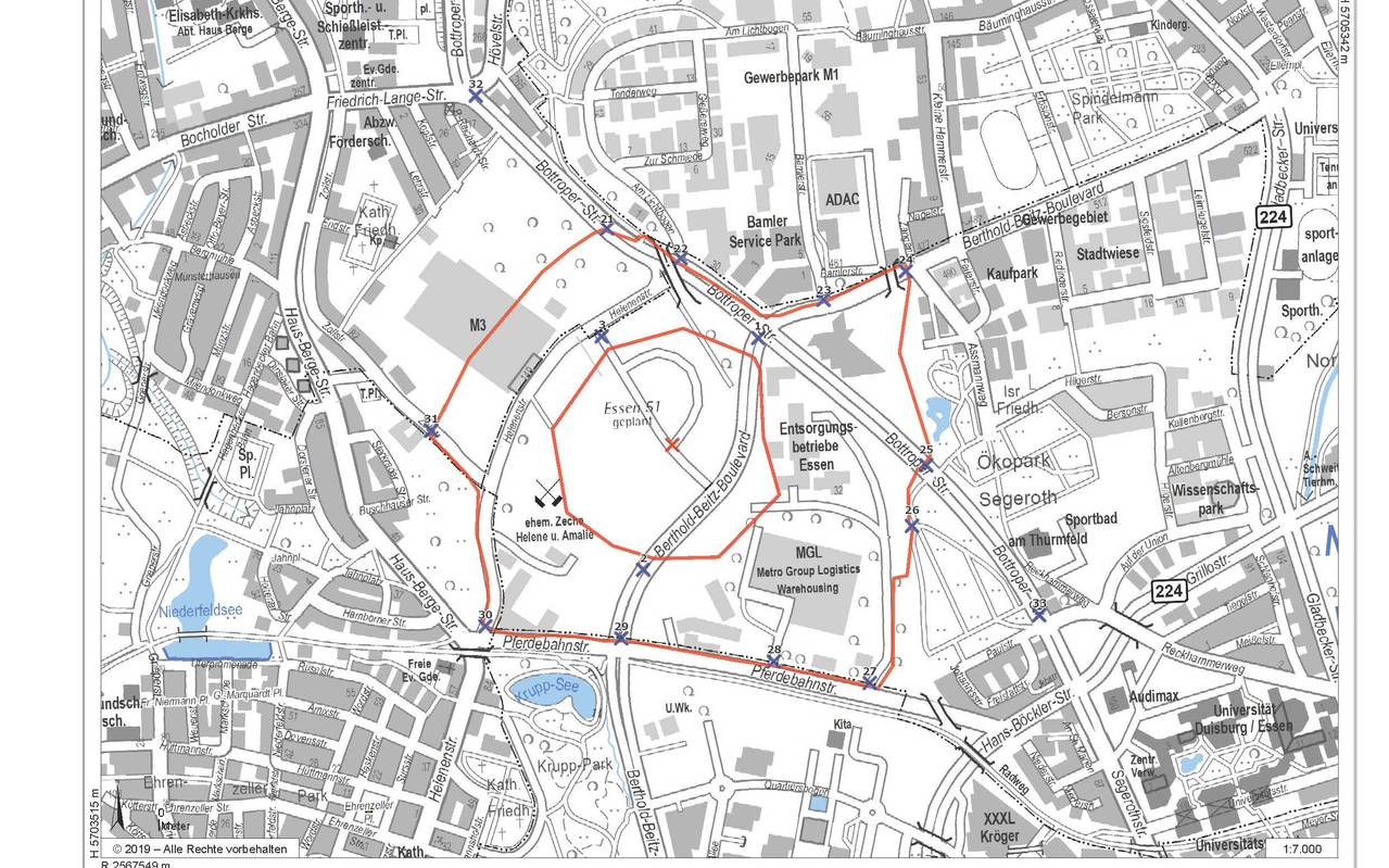 19:51 Uhr: Schon jetzt ist der Berthold-Beitz-Boulevard zwischen der Pferdebahnstraße und der Bottroper Straße gesperrt.