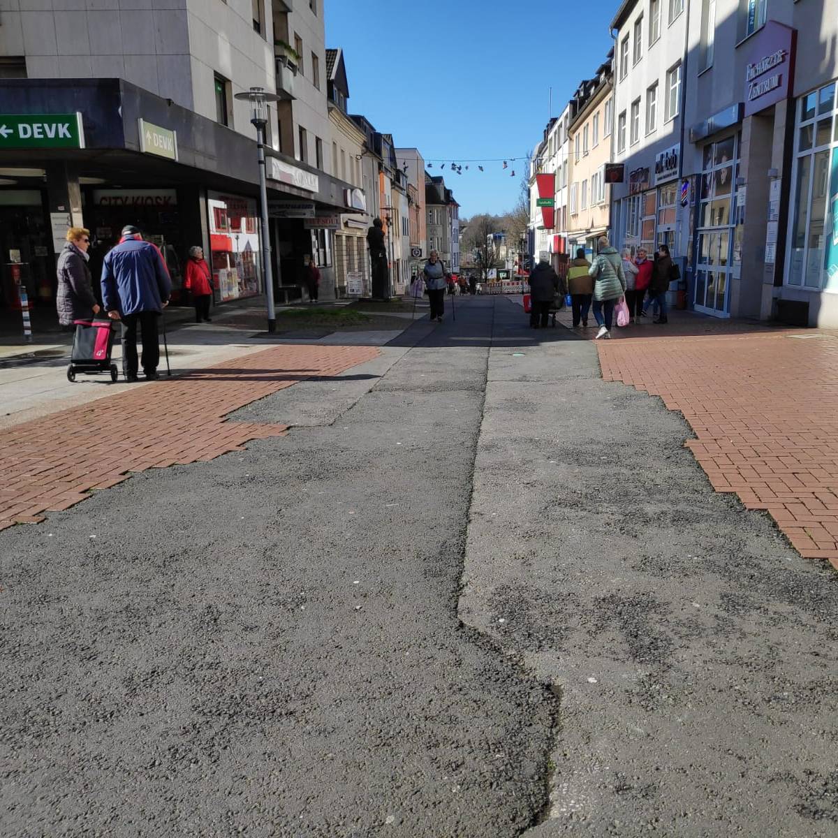 Die Fußgängerzone in Borbeck soll neu gepflastert werden. Der alte Belag auf der Gerichtsstraße zwischen Wüstenhöferstraße und Rechtstraße ist nach einer Kanalbaumaßnahme ein einziger Flickenteppich mit vielen Asphaltstreifen, deshalb sollen dort neue Klinkerpflaster hin. Außerdem soll eine neue Entwässerungsrinne gebaut werden. Die Bauarbeiten sollen schon in den nächsten Wochen starten und ungefähr vier Monate dauern. Die Kosten liegen bei 360.000 Euro. Heute sprechen die Politiker im Bau- und Verkehrsausschuss darüber, Ende April muss noch der Rat der Stadt sein ok geben. Radio Essen Stadtreporterin Anne Schweizer hat sich den Flickenteppich in der Gerichtsstraße angeguckt.