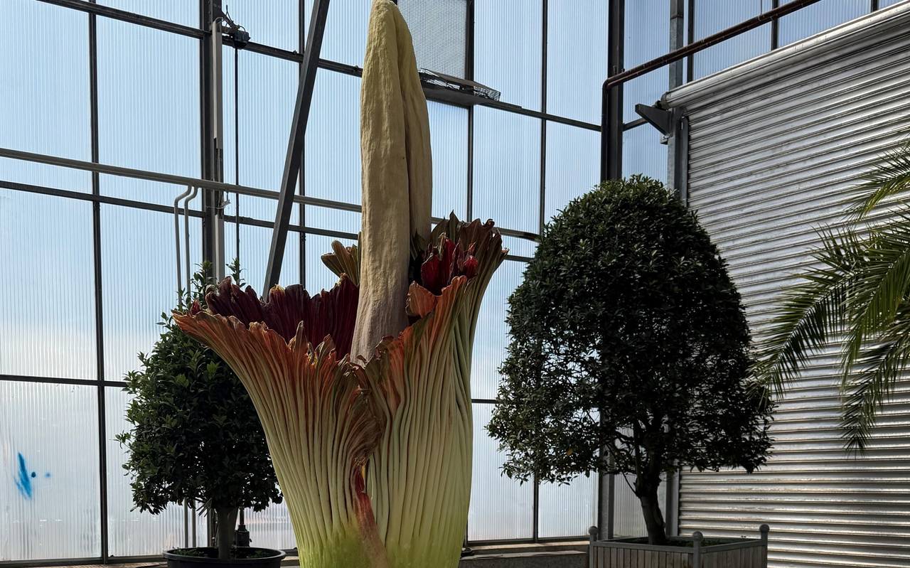 Die Titanenwurz, auch bekannt als "unförmiger Riesenpenis", ist die größte Blume der Welt und ein botanisches Highlight. Ursprünglich auf Sumatra beheimatet, beeindruckt sie mit ihrem gigantischen Blütenstand und einem intensiven Aasgeruch, der Insekten zur Bestäubung anlockt. Im Grugapark Essen ist das Spektakel seit Freitag (20.6.) – zum erst zweiten Mal in der Geschichte des Parks - zu sehen. Die Blüte der Titanenwurz ist ein kurzlebiges Ereignis, das weltweit für Aufsehen sorgt. Die Blüte öffnet sich nur für wenige Stunden, maximal 48, bevor sie wieder in sich zusammenfällt. Dabei verströmt sie einen intensiven Geruch, der an verwesendes Fleisch erinnert. Diese Strategie dient dazu, möglichst viele Bestäuber anzulocken.