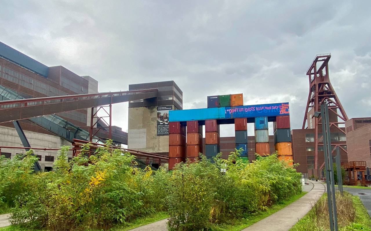 Das Brandenburger Tor aus Containern wurde in Essen aufgestellt, weil am 18. November die KI Biennale auf Zollverein beginnt. Ein Künstler wird in den nächsten Wochen die Container mit Folien überziehen, darauf sind dann unterschiedlich QR-Codes zu sehen. Besucher können die Codes mit dem Smartphone scannen und kommen so in virtuelle Räume. Der Künstler, Thomas Wirth, hofft, dass viele junge Menschen mit seinen Codes spielen. Kinder und Jugendliche könnten sich so spielerisch und künstlerisch mit Künstlicher Intelligenz und mit Demokratie beschäftigen, sagte er im Radio Essen-Interview. Das Kunstwerk stand bereits in Frankfurt, Dubai und Hamburg. Bis Ende März bleibt es in Essen. Spaziergänger auf Zollverein reagieren sehr unterschiedlich auf das 21 Meter hohe Kunstwerk.