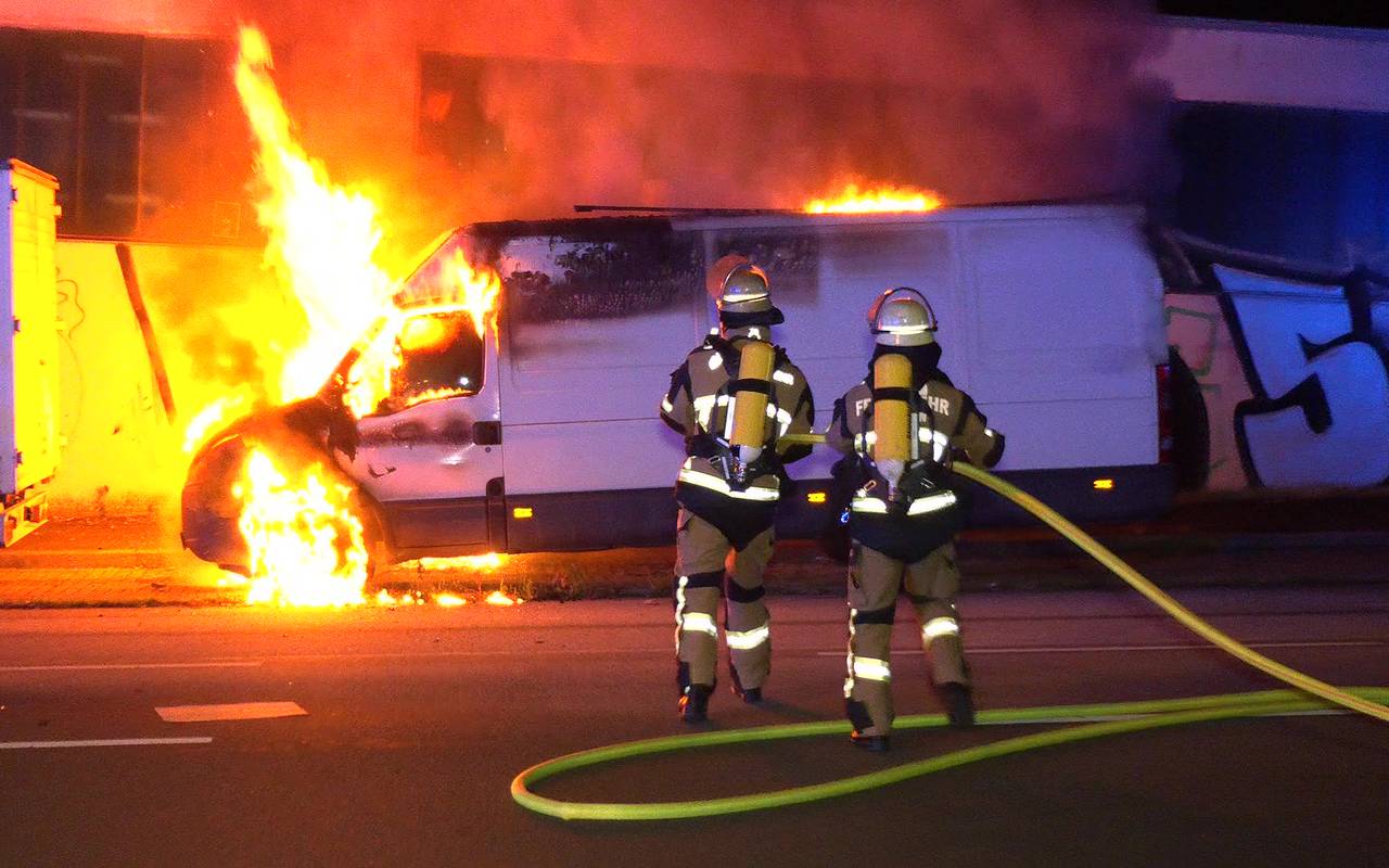 Eine Brandserie in der Nacht zum Freitag (18. Juli) hat der Feuerwehr Essen viel Arbeit bereitet. Sie musste insgesamt zu vier Bränden ausrücken, alle nah beieinander. Zuerst ging es für die Einsatzkräfte an die Cathostraße in Bergeborbeck. Um 2:13 Uhr meldete ein Anrufer einen Kleintransporter in Vollbrand. Das bestätigte sich beim Eintreffen der Feuerwehr. Der brennende Transporter stand direkt neben einem weiteren Transporter sowie neben einer Lagerhalle mit Reifen. Die Feuerwehr konnte den Transporter löschen und verhindern, dass das Feuer auf den anderen Transporter und die Lagerhalle übergreift. Verletzt wurde niemand, der Einsatz dauerte rund eine Stunde.