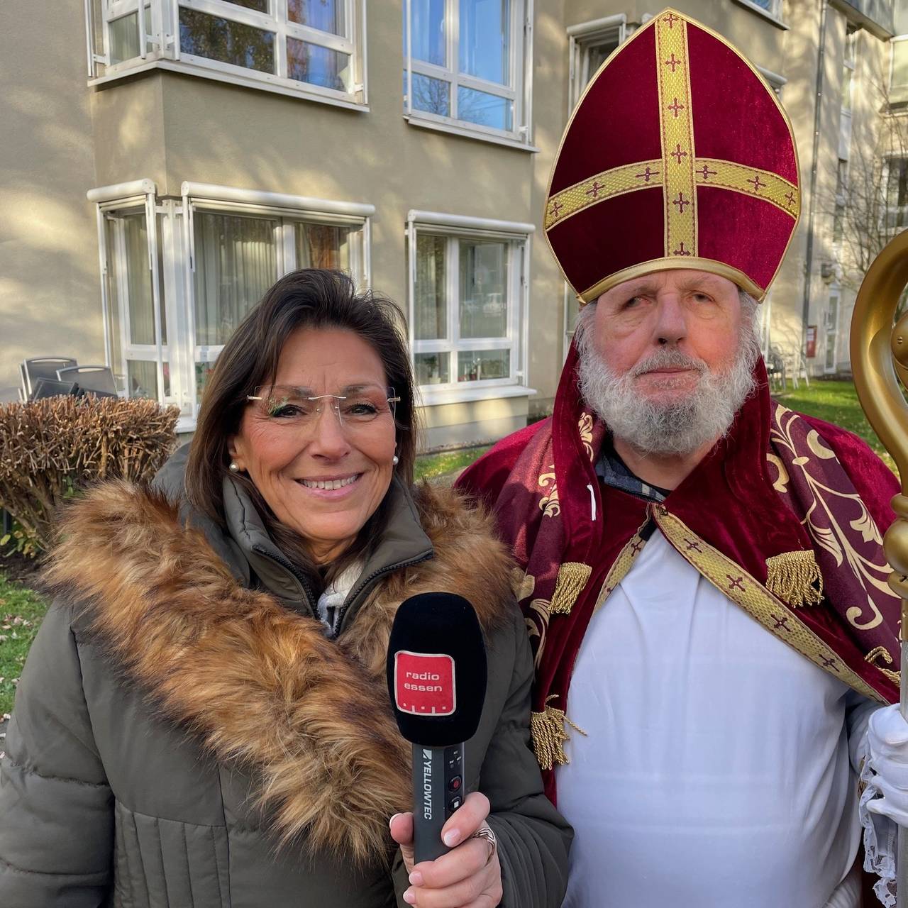 Nikolaus, Engel und verkleidete Ponys: Kurz vor dem Bürger-Weihnachtsmarkt im Haus-Berge-Park in Essen-Bochold kamen alle zu einer Kostümprobe für Radio Essen. Im Garten des Seniorenheims dauerte es gut zehn Minuten und schon war die Weihnachtstruppe fertig. Am längsten hat die Frisur der beiden tierischen Begleiter gedauert.