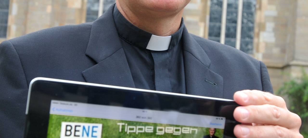 1. Registriert euch bis zum ersten Spieltag auf dieser Kicktipp-Webseite. Sie ist vom Bistums-Magazin BENE extra für das Spiel mit Bischof Overbeck eingerichtet worden.