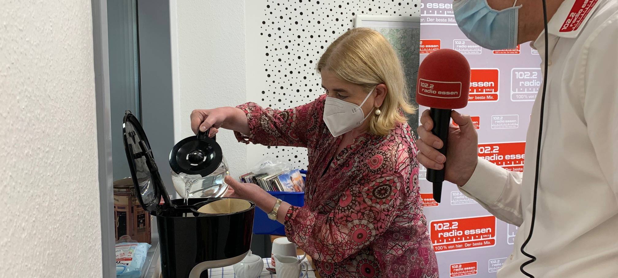 Das aller letzter Politiker-Praktikum bei Radio Essen: CDU-Direktkandidatin Astrid Timmermann-Fechter aus dem Wahlkreis Mülheim/Essen I (Nordwesten) hat die Stunde als Praktikantin bei uns im Studio gut überstanden. Auch die letzte Politiker-Praktikantin musste den Wetterbericht sprechen, Kaffee für die Redaktion kochen und unter Zeitdruck Fragen beantworten. Das Highlight der Kandidatin war, dass die Aufgaben im Politiker-Praktikum so vielfältig waren.