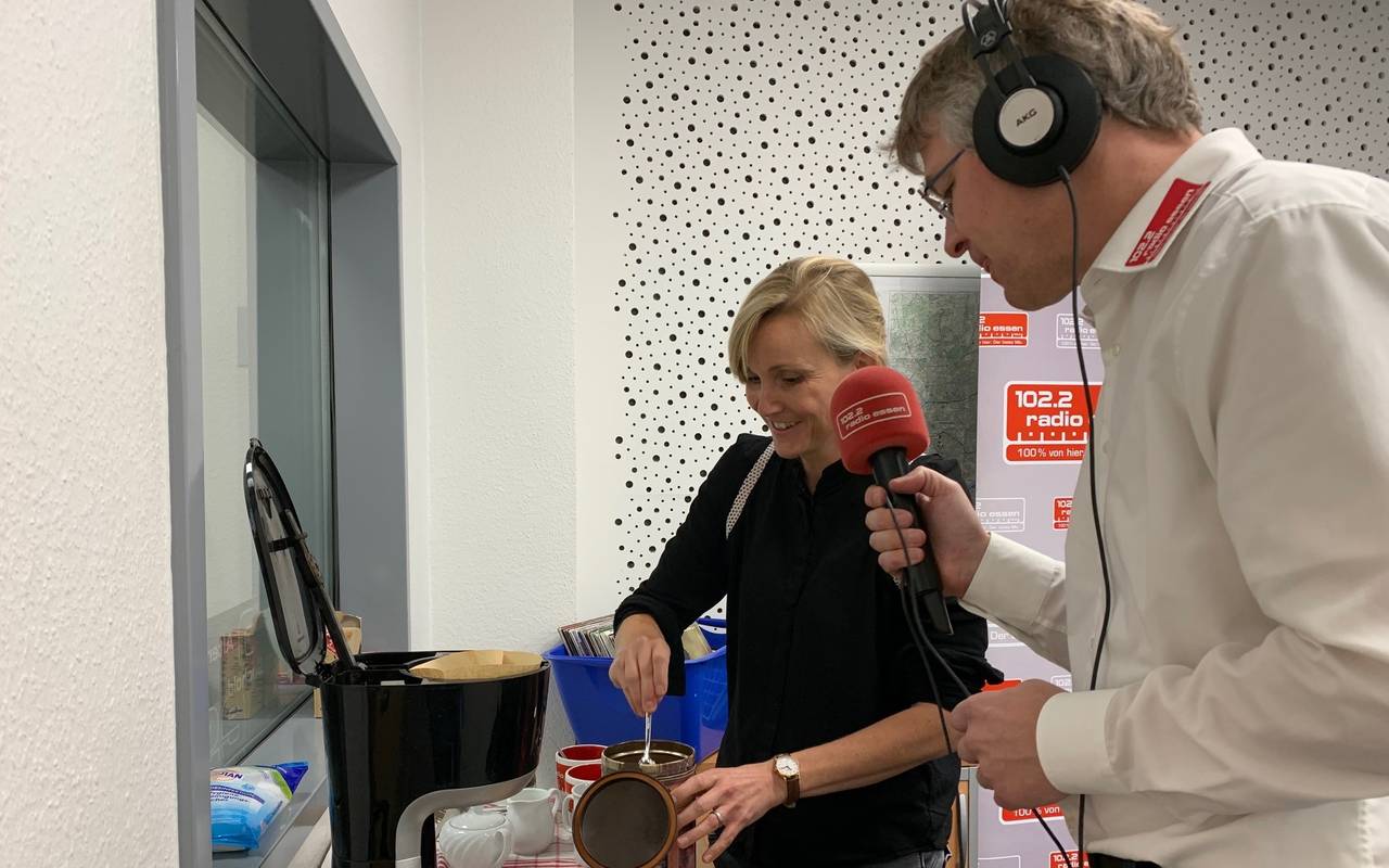 Das zweite grüne Politiker-Praktikum bei Radio Essen: Franziska Krumwiede-Steiner aus dem Wahlkreis Mülheim/Essen I (Nordwesten) hat die Stunde als Praktikantin bei uns im Studio gut überstanden. Auch auf ihrer Aufgabenliste stand: Wetterbericht sprechen, Kaffee für die Redaktion kochen und unter Zeitdruck Fragen beantworten. Letzteres war ein Highlight der Kandidatin: Die Kurzsatzrunde fand sie besonders gut. Außerdem hat ihr der Wetterbericht viel Spaß gemacht.