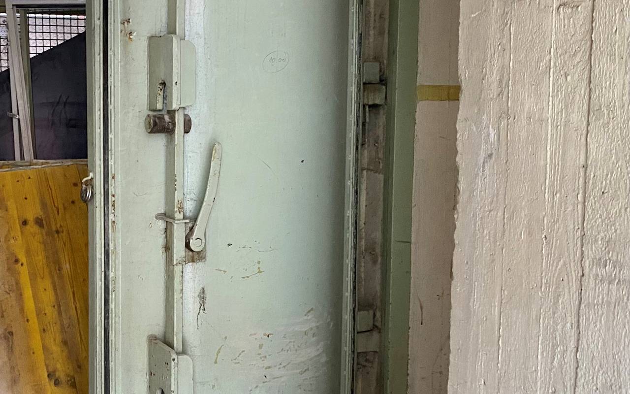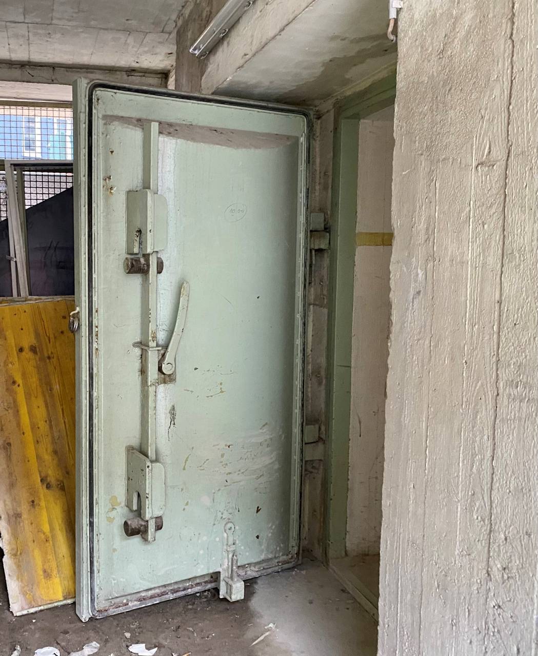 Die alten, schweren Metalltüren bleiben als Denkmäler geöffnet stehen und werden nicht verschlossen. Der Bunker bekommt eine normale Eingangstür, die optisch gut ins Bild passt.