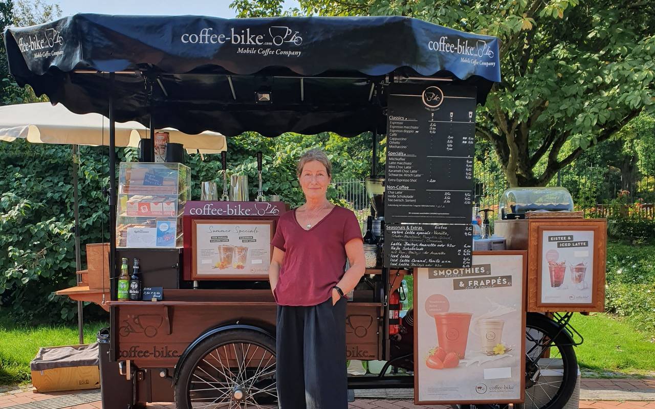 Seit 2013 gibt es das Coffeebike von Claudia Lüpken in Essen. Sie hat sich auf einer Messe spontan in das Bike verliebt und sich dann dem Franchise aus Osnabrück angeschlossen.