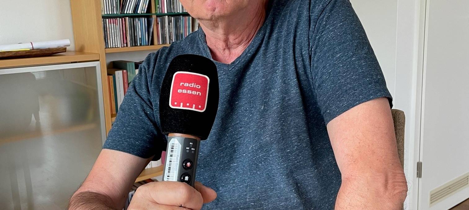 Schuhe an oder Schuhe aus? Diese Frage klärt Radio Essen Moderator Timm Schröder als erstes bei seinem Hausbesuch bei Herbert Knebel alias Uwe Lyko. Eigentlich wollten sich die beiden an der Regattastrecke am Baldeneysee treffen. Da hat das Wetter aber nicht mitgespielt. Deshalb ging es in das Wohnzimmer des Comedians in Werden. Auch ein Lieblingsplatz von Uwe Lyko, genauso wie die Gruga. Hier tritt Herbert Knebel mit seiner Band am 11. und 12. August auf. Mehr dazu in unseren Veranstaltungstipps.
