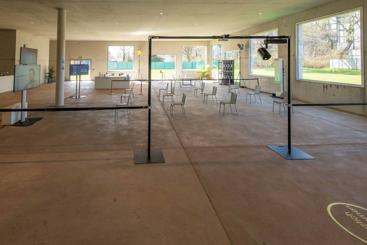Die Folkwang-Agentur im Sanaa-Gebäude in Essen testet aktuell zusammen mit LUMUX Guardian, LAICOS und der evolution GmbH, wie Veranstaltungen in der Corona-Pandemie wieder stattfinden können. Für kleinere Veranstaltungen von bis zu 25 Menschen, hilft die Firma mit ihrem Schnelltest-System bereits bei Firmen-Meetings, Kongressen oder auch Parteitagen. Sie kümmern sich hauptsächlich um den sicheren Einlass der Gäste und prüfen, ob alle Regeln eingehalten werden. Der Ablauf dauert etwas, ist aber recht simpel.