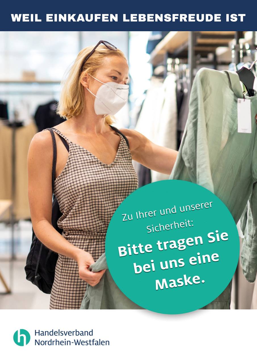 Eine Umfrage des Handelsverbands NRW hat ergeben, dass die Mehrheit der Einzelhändler auch weiterhin an der Maskenpflicht für ihre Mitarbeiter festhält (60%). Etwa 16% wollen auch ihre Kunden weiter verpflichten, eine Maske zu tragen, etwas weniger als die Hälfte aller Geschäfte bittet um freiwilliges Tragen.