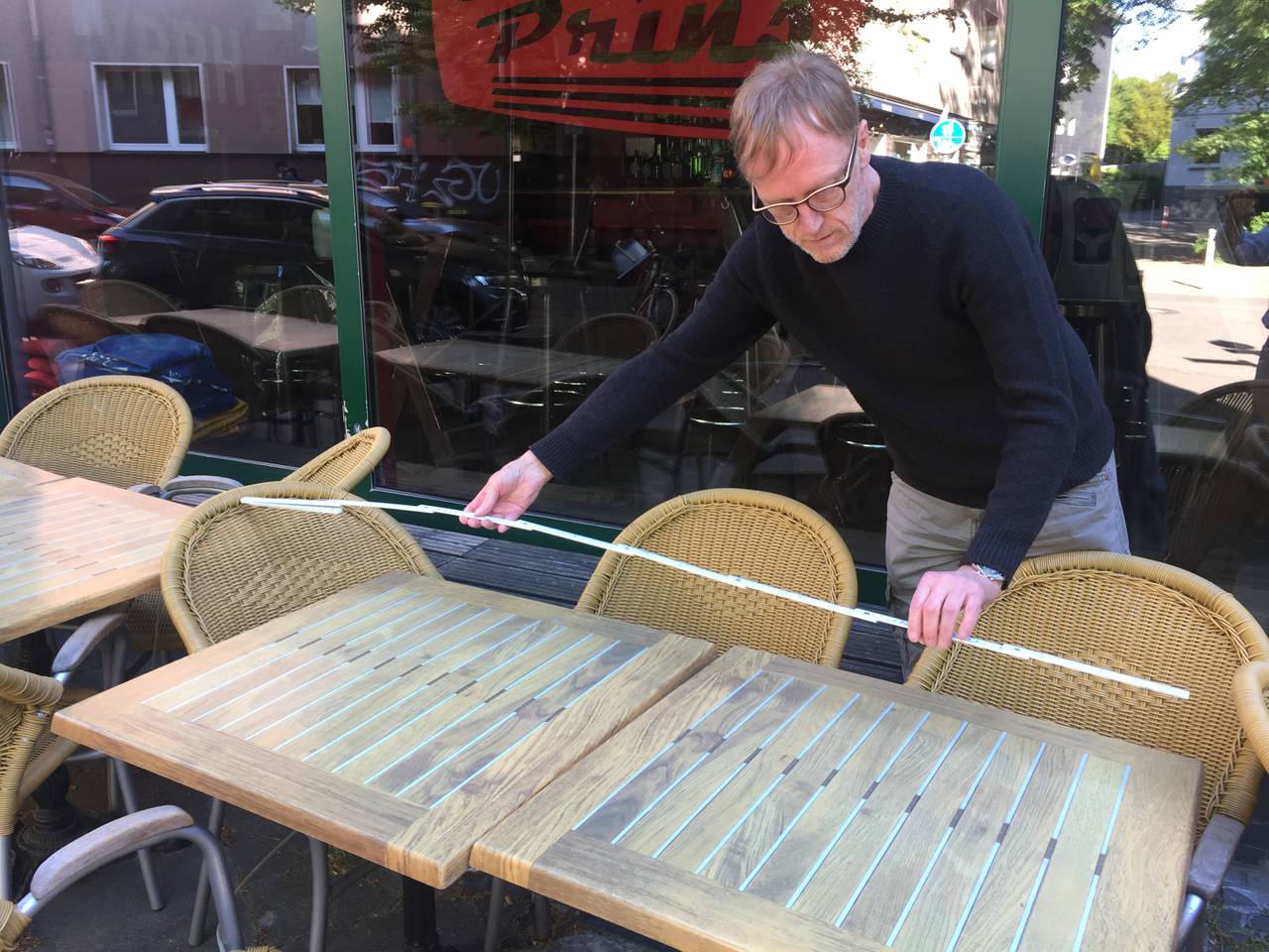 Der Gastwirt bereitet sich jetzt, nach den Lockerungenm auf die Wiedereröffnung seiner Kneipe vor. Dafür heißt es Stühle rücken und planen, wie man mit weniger Gästen umgehen kann. Auch in der Kneipe müssen weiterhin Abstandsregeln eingehalten werden.