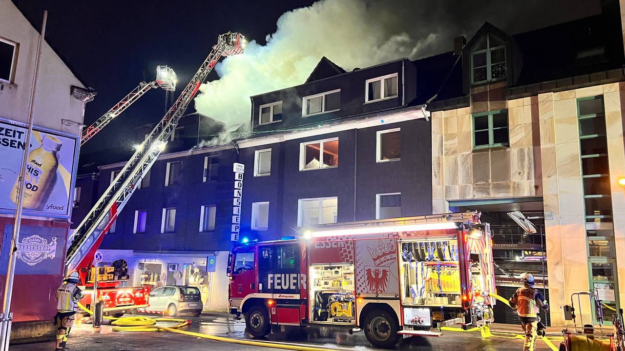 In Essen hat am Montagmorgen (19. Februar) die Dachgeschosswohnung eines großen Mehrfamilienhauses gebrannt. Eine Straße ist voll gesperrt, das sorgt auch für Probleme bei Schülern.