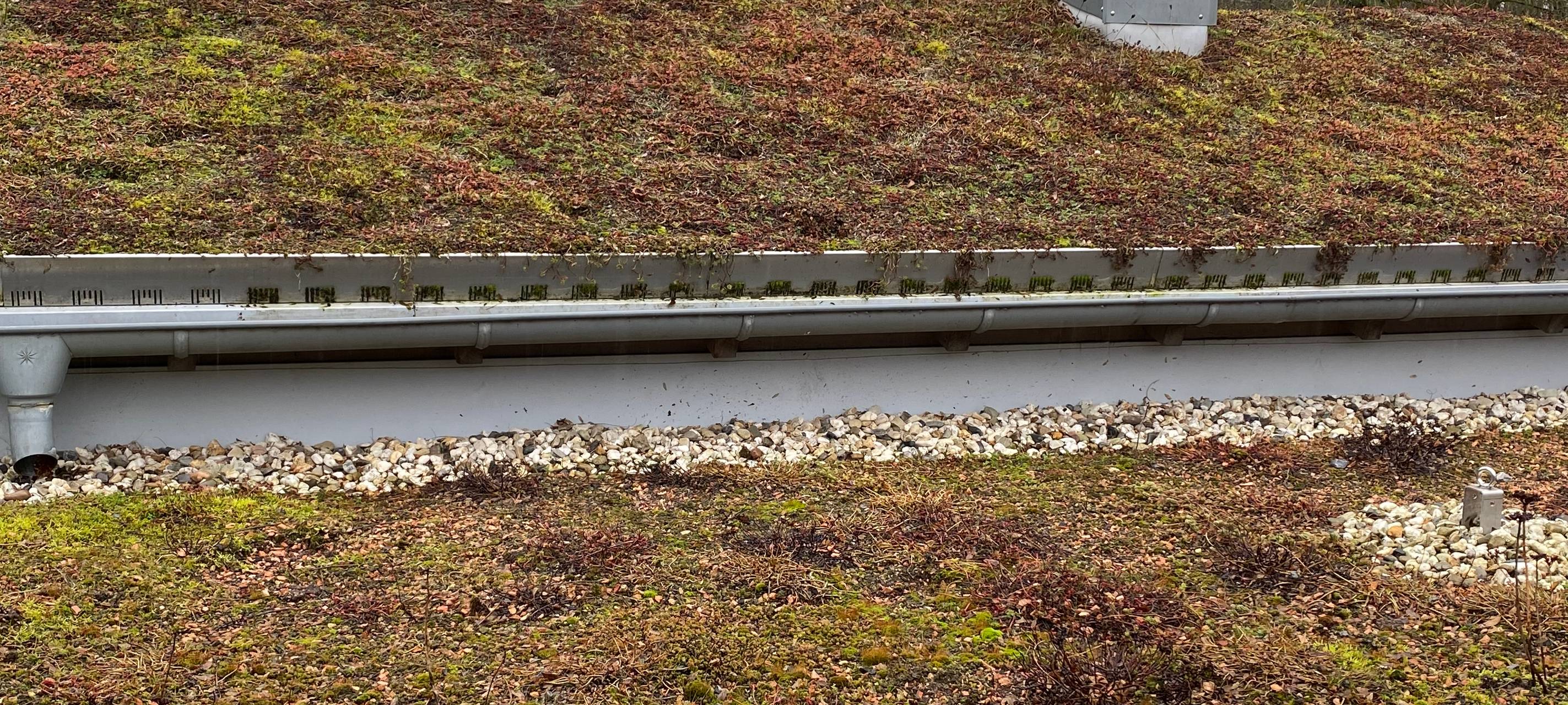 Ein grünes Dach hat mehrere Vorteile. Zum einen schützt es die Dachhaut, die dann nicht mehr Wind, Regen, Kälte oder Wärme ausgesetzt ist und dadurch schneller altert. Expert:innen sagen, mit einem grünen Dach lässt sich die Haltbarkeit des Daches verdoppeln. Außerdem ist das grüne Dach gut für das Mikroklima in der Stadt. Die Pflanzen auf dem Dach speichern das Regenwasser und geben es nur nach und nach wieder ab, es verdunstet langsam und landet nicht sofort in der Kanalisation. Das führt dazu, dass es kühler bleibt auch an heißen Sommertagen, die wir inzwischen häufig haben. Die Pflanzen auf dem Dach dienen außerdem den Insekten als Nahrung und sind damit ebenfalls gut für die Umwelt.