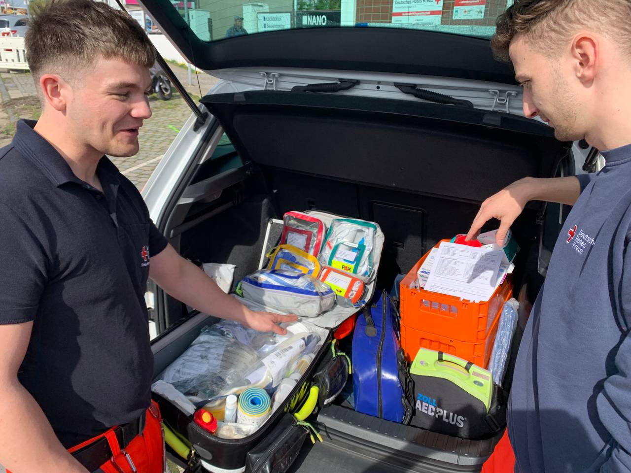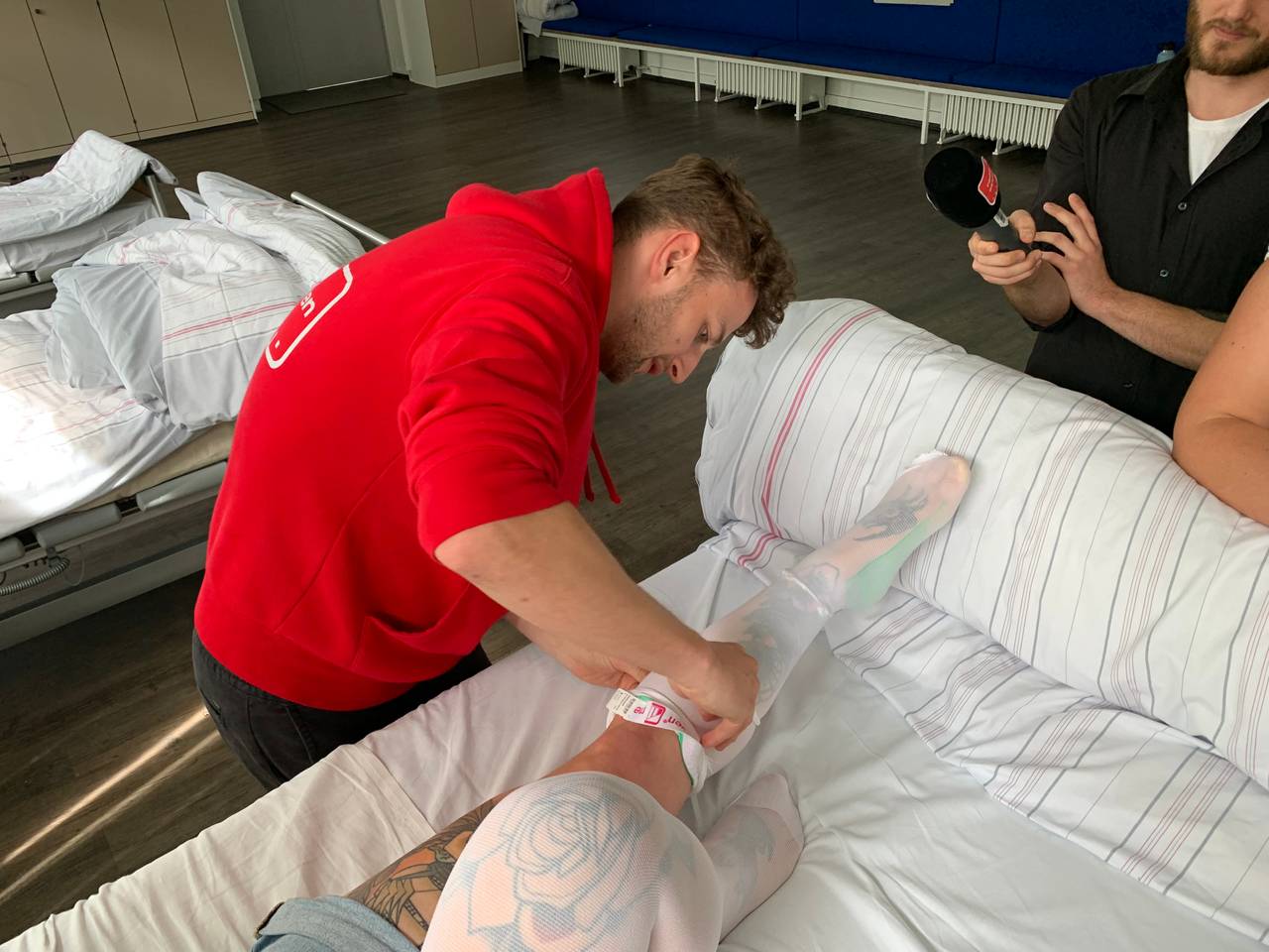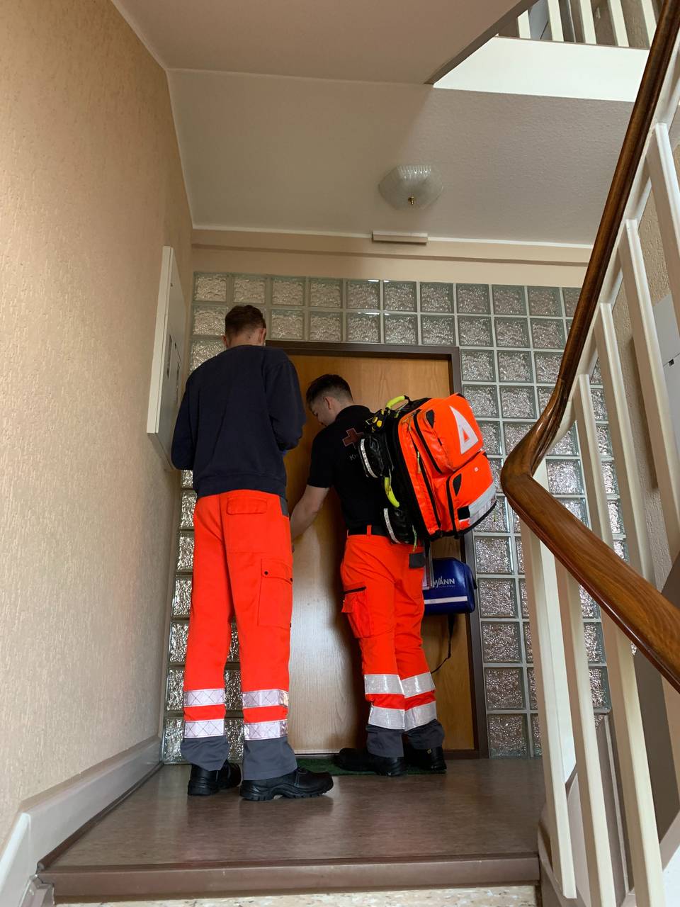 Bei Schichtbeginn muss man das Auto auf Vollständigkeit checken. Wenn ein Anruf beim Hausnotruf in der Zentrale ankommt, wird zuerst geklärt was passiert ist. Manchmal ist es nur ein Fehlalarm oder die Person ist versehentlich auf den Knopf gekommen. Wenn sie gestürzt ist oder anders Hilfe braucht wird ein Wagen losgeschickt. Vor Ort überprüfen die Rettungshelfer immer zuerst den Zustand des Patienten. Wie geht es ihm? Braucht er Schmerzmittel? Es ist ein Job der viel Empathie erfordert. Rettungshelfer sollten Blut sehen können und auf Extremsituationen vorbereitet sein. Paul und Nina erklären, dass sie sich durch die Einsatzkleidung geschützt fühlen.