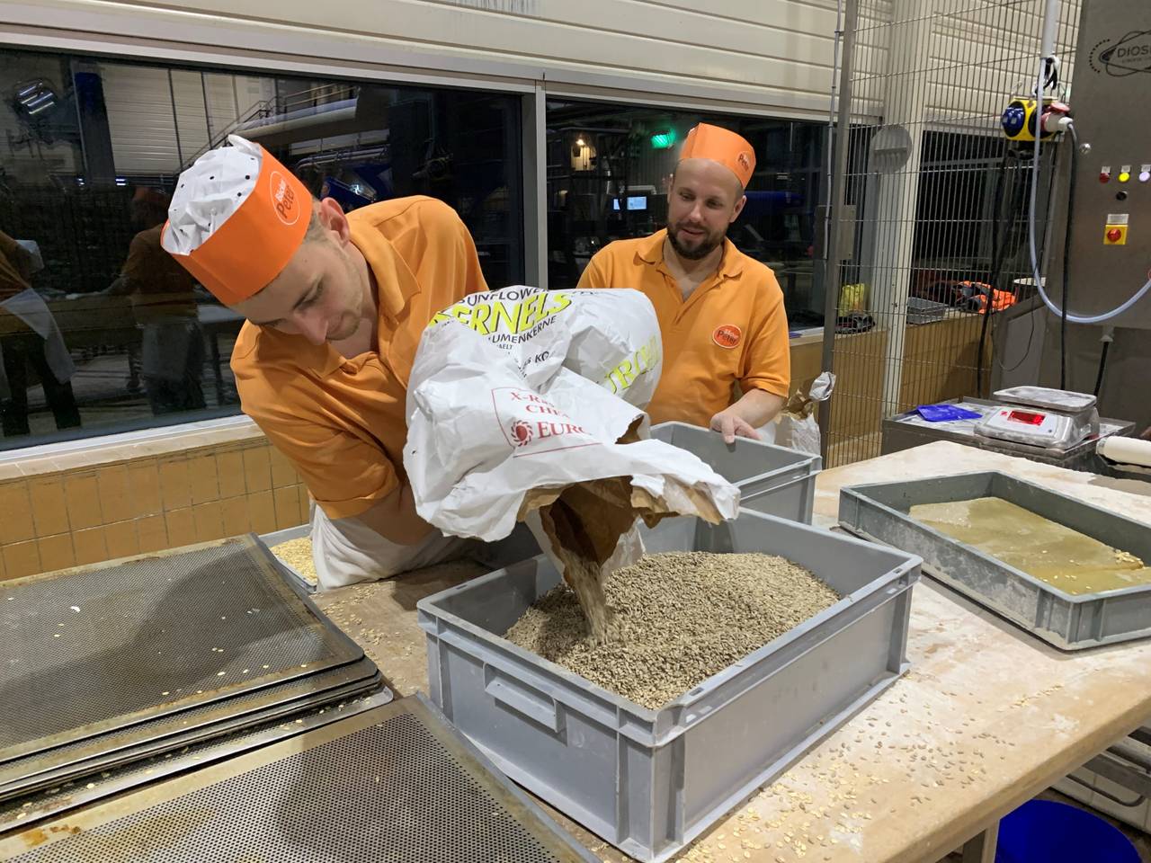 Am "Tisch" werden die Brote "aufgemacht". Die Champions League des Backens. Das Brot muss mit einer speziellen Technik geknetet werden, damit es richtig aufgeht. Die Maschine, die den Teig portioniert und nachliefert, stoppt dabei nicht. Joshua verzweifelt komplett. Wie sich das anhört, vor allem wenn Bäcker Thomas ihn richtig rannimmt, könnt Ihr Euch am besten selbst anhören