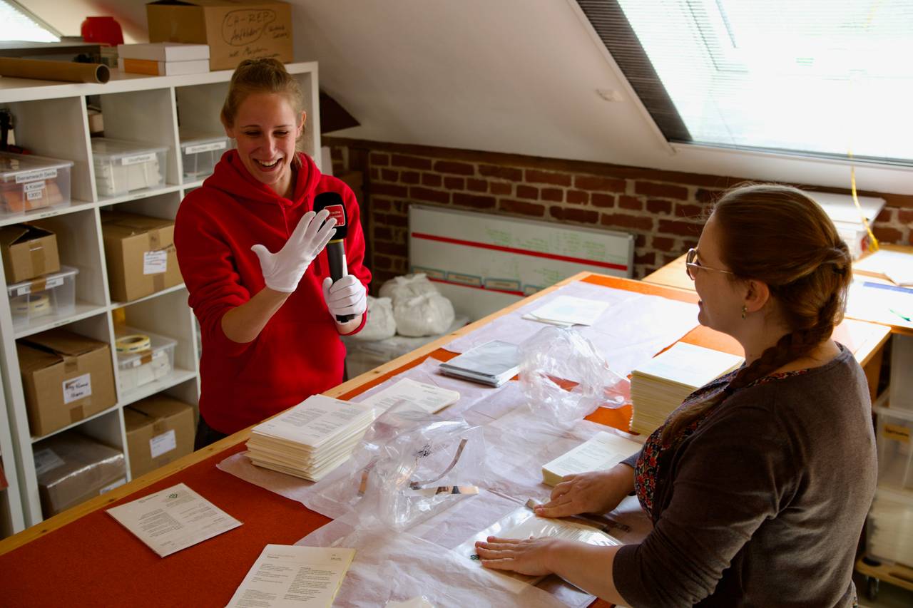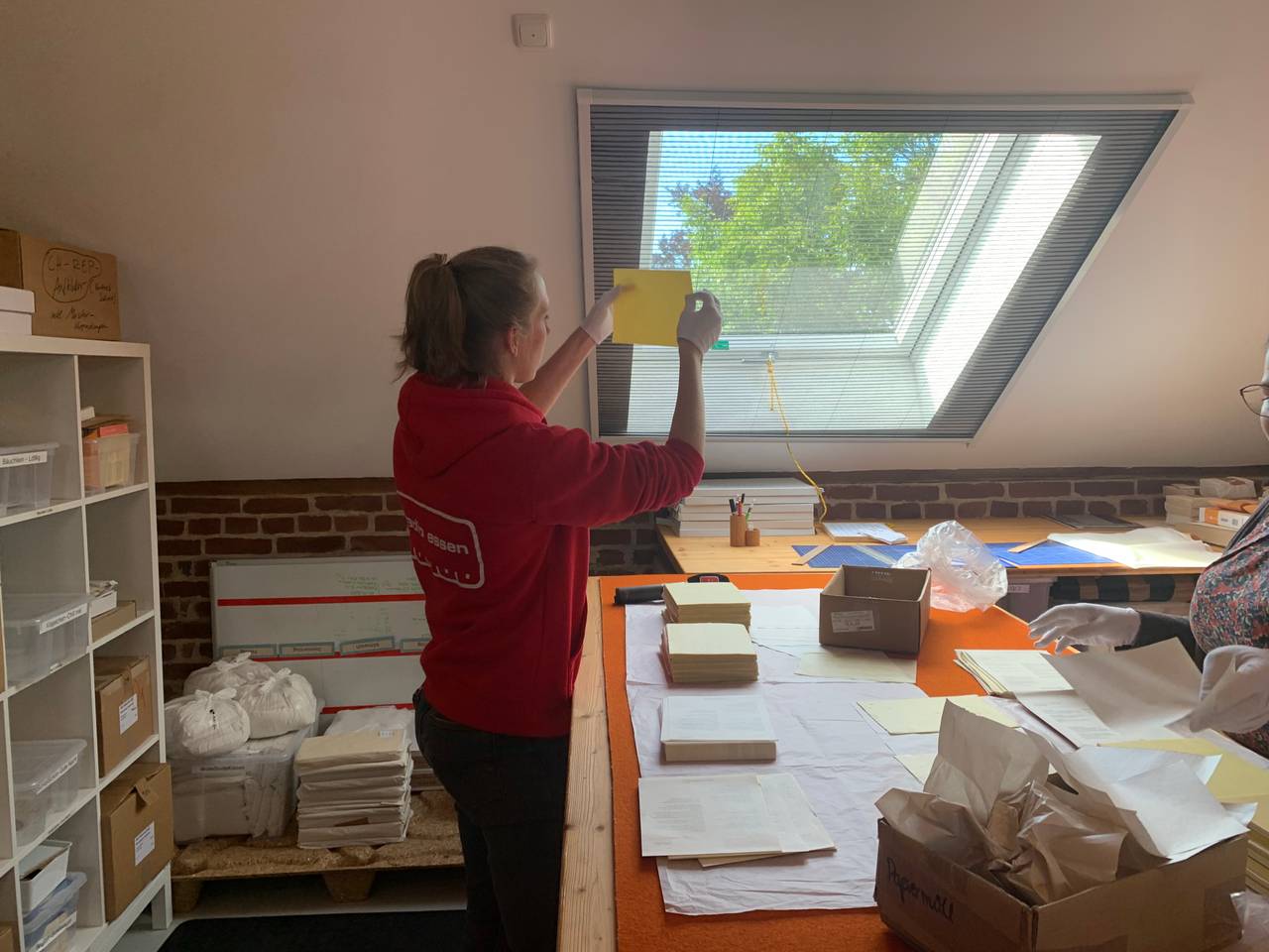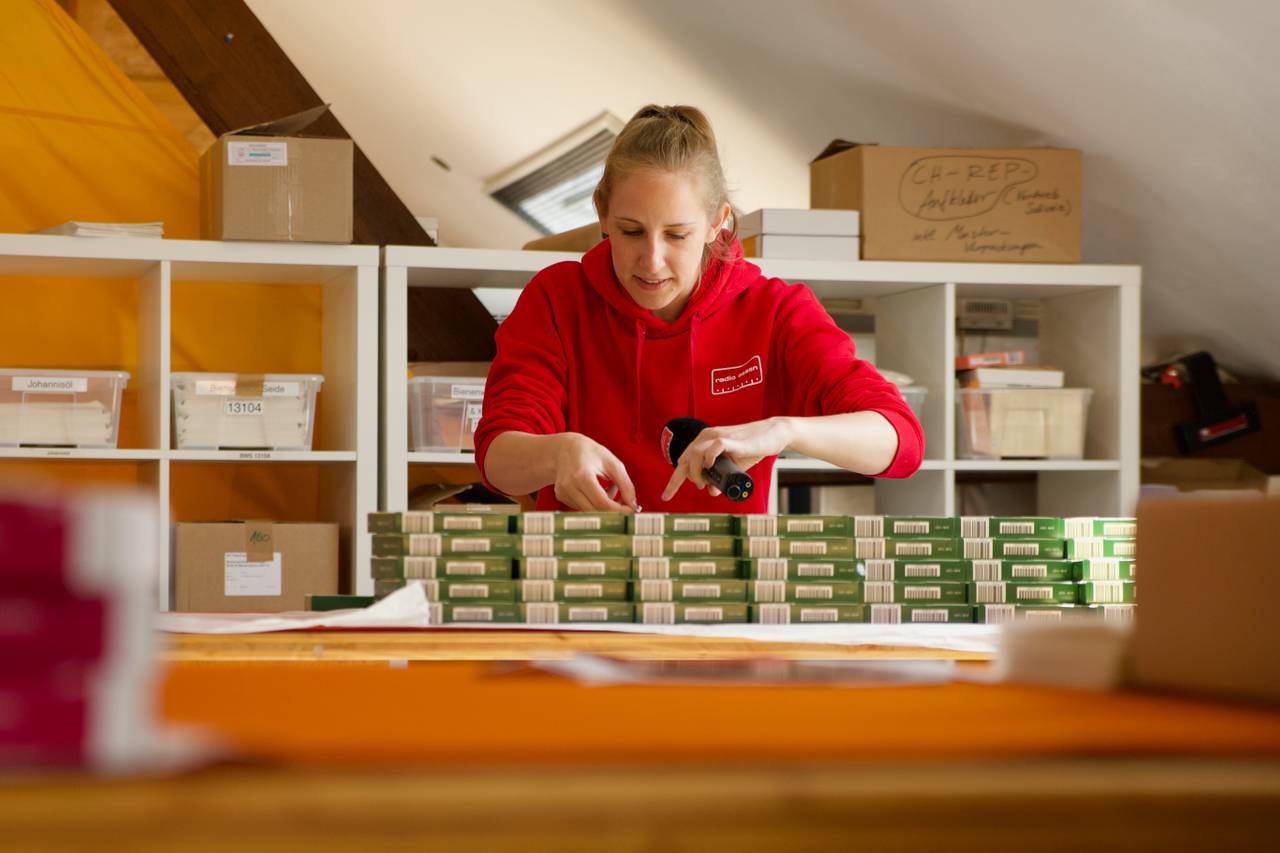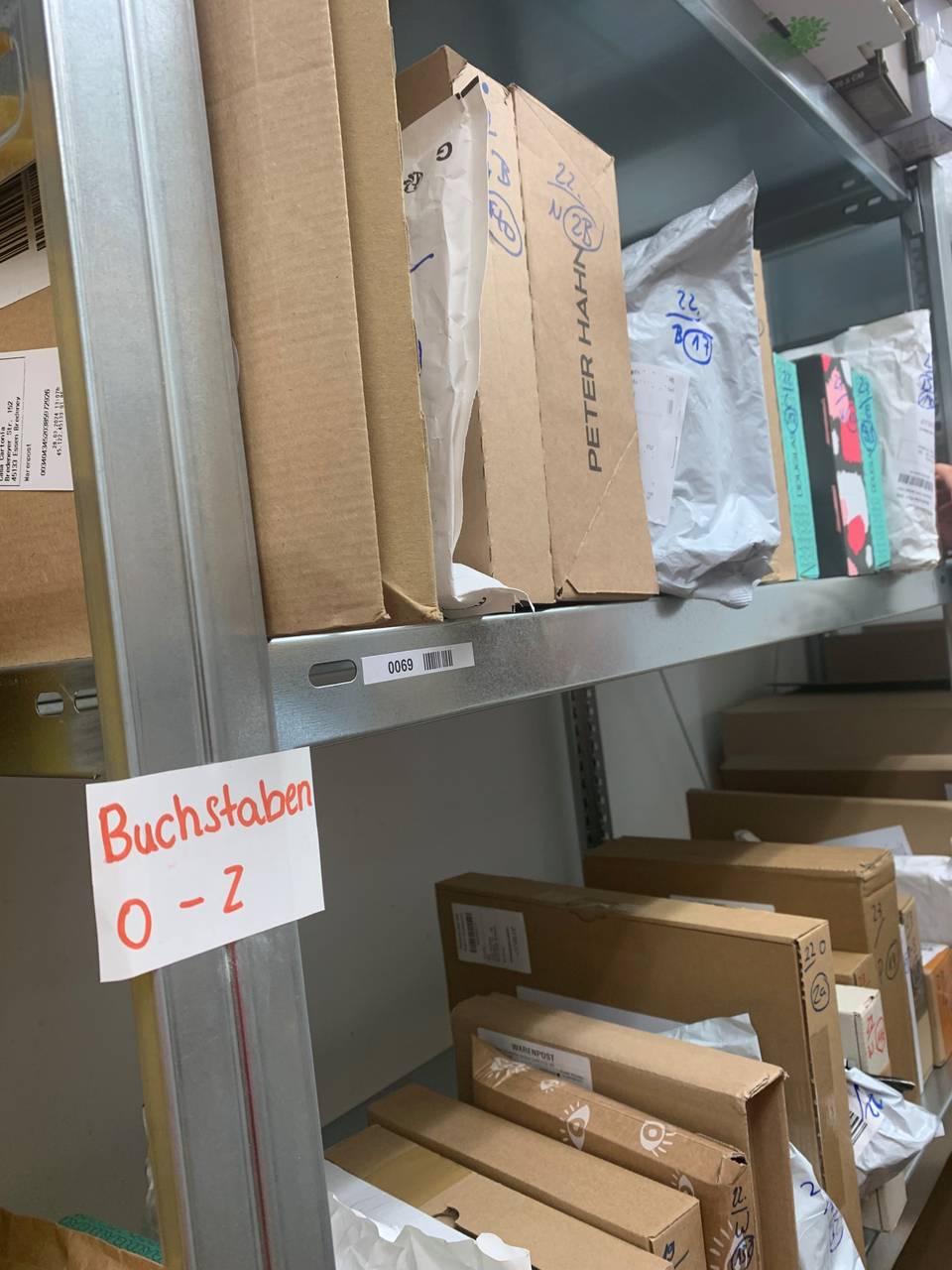 Bei ihrem Praktikum wurde Larissa zuerst in die Sortierung der Pakete eingeführt: Lauter Pakete stehen in den Regalen, alphabetisch sortiert. Neue Pakete müssen dann auch erst einmal beschriftet werden – und eingelagert. Zwischendurch kommen Paketboten und bringen noch mehr Pakete. Ein ewiger Kreislauf.