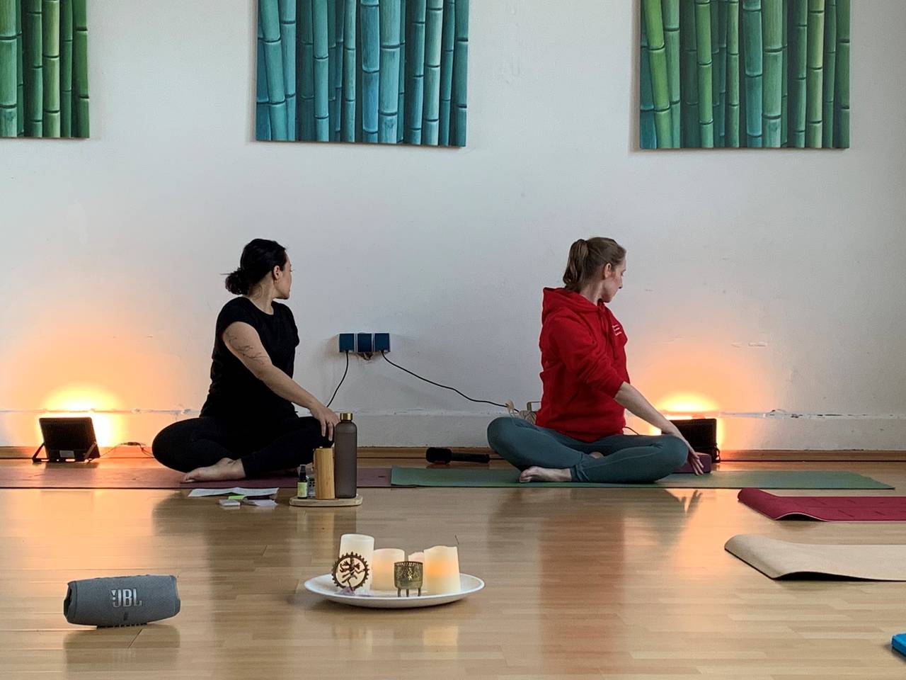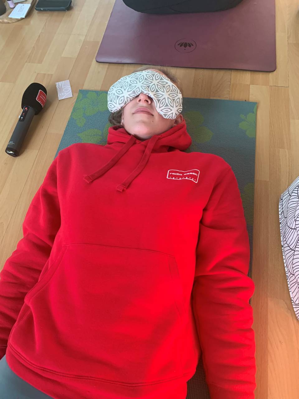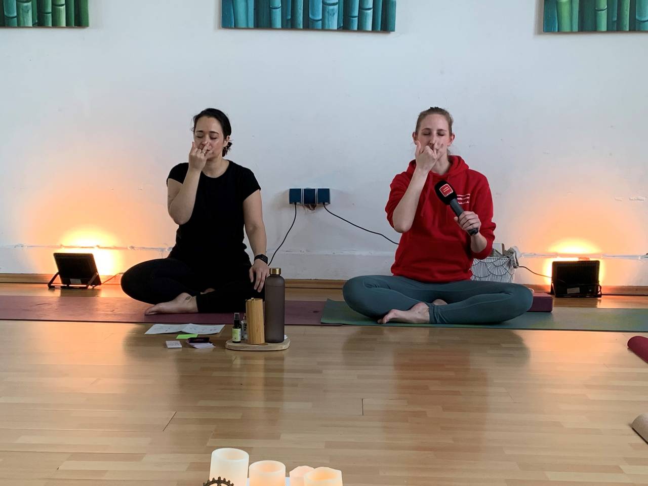 Namasté! Dass Radio Essen-Frühschicht Moderatorin Larissa Schmitz ihre Stimme einsetzen kann, beweist sie jeden Morgen ab 6 Uhr. Aber kann sie das auch außerhalb des Studios, unter ganz anderen Voraussetzungen? Das hat sie im Praktikum bei Yoga-Lehrerin Eileen auf die Probe gestellt. Auch die kennt schon beide Seiten, schließlich wurde sie zuletzt bei Radio Essen zu Essens bester Stimme gekürt. Sie bringt Larissa im Praktikum als Yoga-Lehrerin "Nadi Shodhana" bei. Eine Atemübung. Beim Üben tut sich Larissa vor allem mit der tieferen Stimmlage noch etwas schwer. Dann geht es mit dem Fahrrad nach Rüttenscheid in die Villa Rü. Komplett aus der Puste ist noch keine Entspannung angesagt. In kürzester Zeit muss der kurz zuvor freigewordene Raum ausgestattet werden. Lampen, Musik, Kerzen, Tee und Kekse sorgen für die richtige Yoga-Stimmung. Und dann ist Larissa auch schon gefragt, die 12 Teilnehmerinnen und Teilnehmer entspannt durch die Atemübung zu führen.