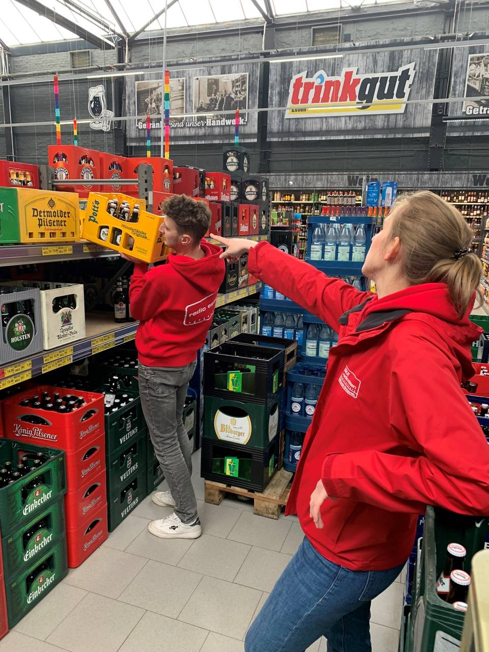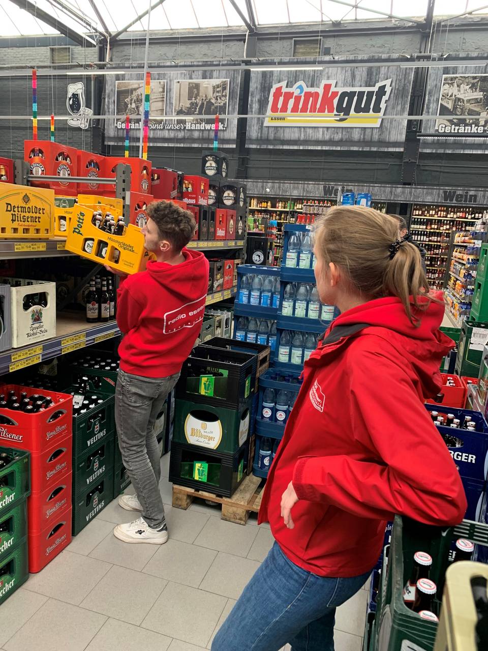 Radio Essen-Moderatoren im Getränkemarkt: Larissa und Joshi gemeinsam beim Praktikum