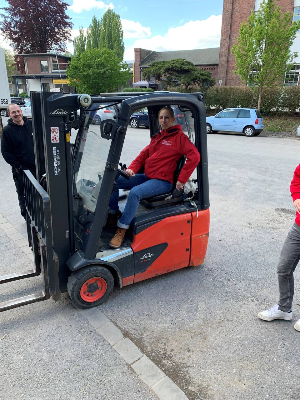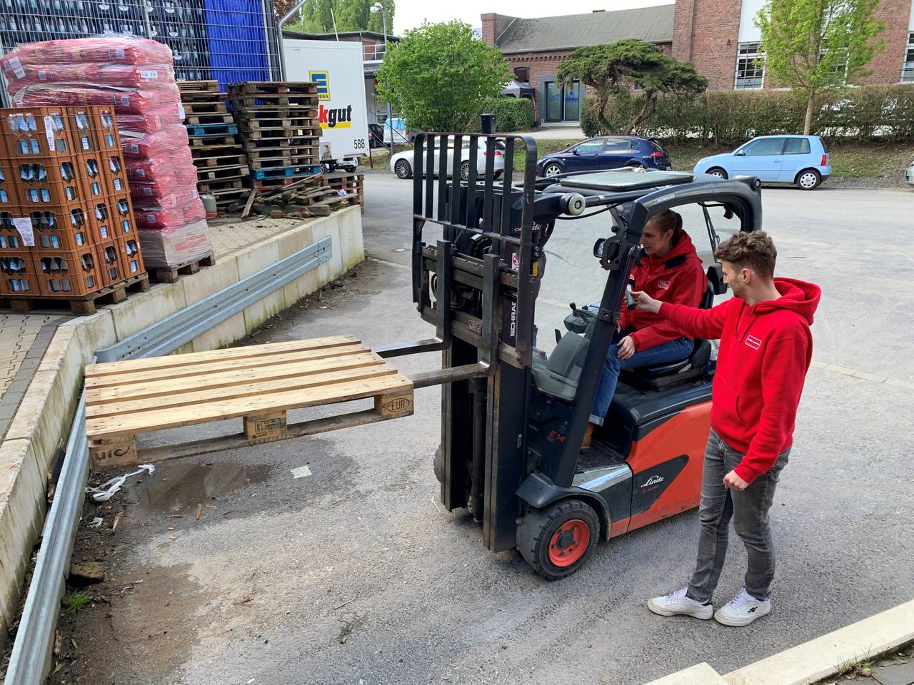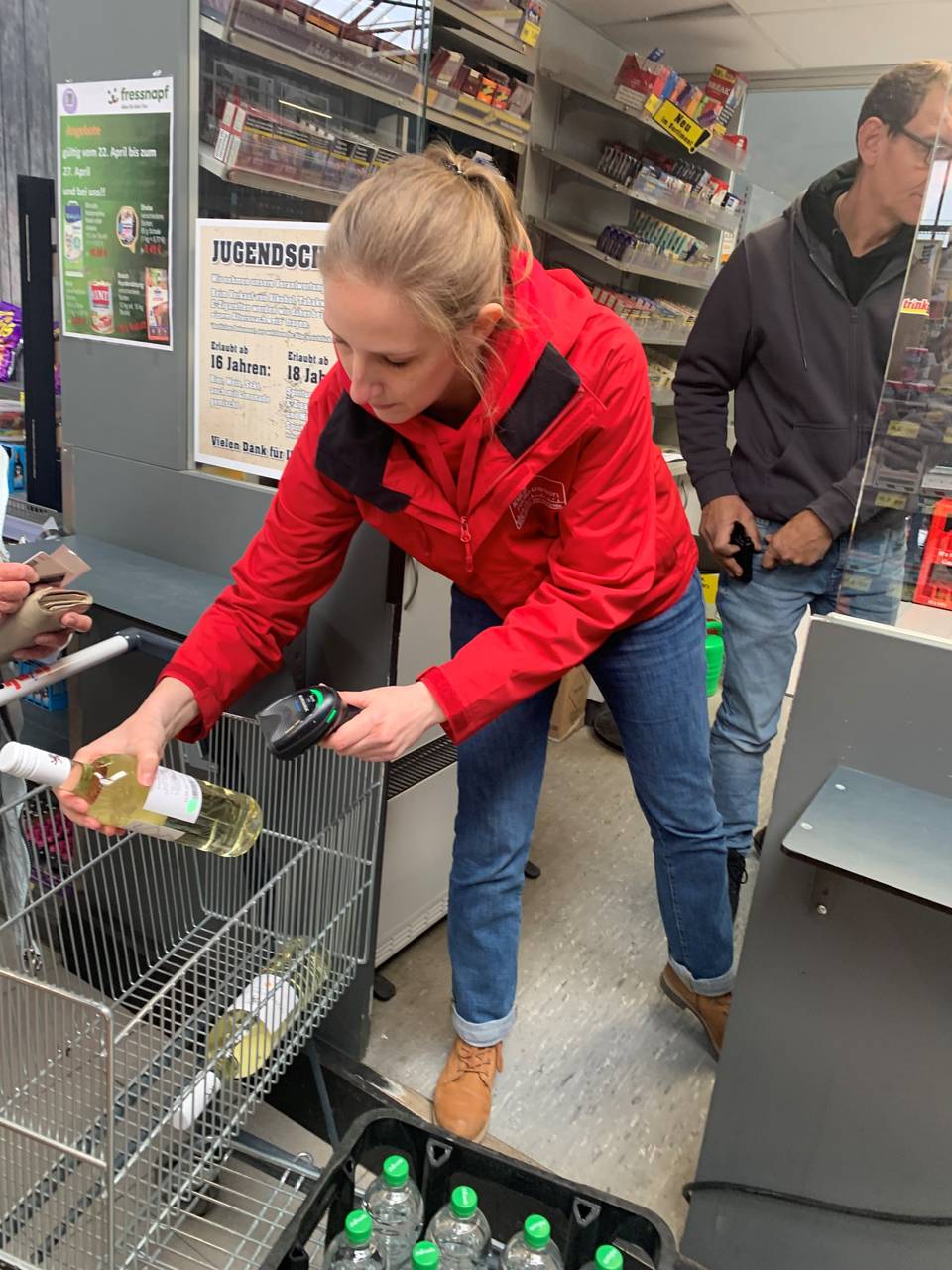 Also geht es an die nächste Station. Ware einräumen steht an. 500 verschiedene Sorten Bier und 2.500 Sorten alkoholfreie Getränke gibt es im Markt. Joshi startet aber erstmal mit einer Palette. Die elektrische "Meise" zum Transport und rein in den Markt. Gar nicht so einfach, bei vielen engen Gängen und einkaufenden Kunden. Larissa hingegen hat Gefallen am Dirigieren gefunden. Nachdem Joshi auch hier zu langsam war, gibt es eine kleine Lehrstunde im Gabelstapler-Fahren. Danach zeigt Larissa noch ihre Fähigkeiten an der Kasse und dann war es das schon. Das Fazit? Beide können gerne anfangen.