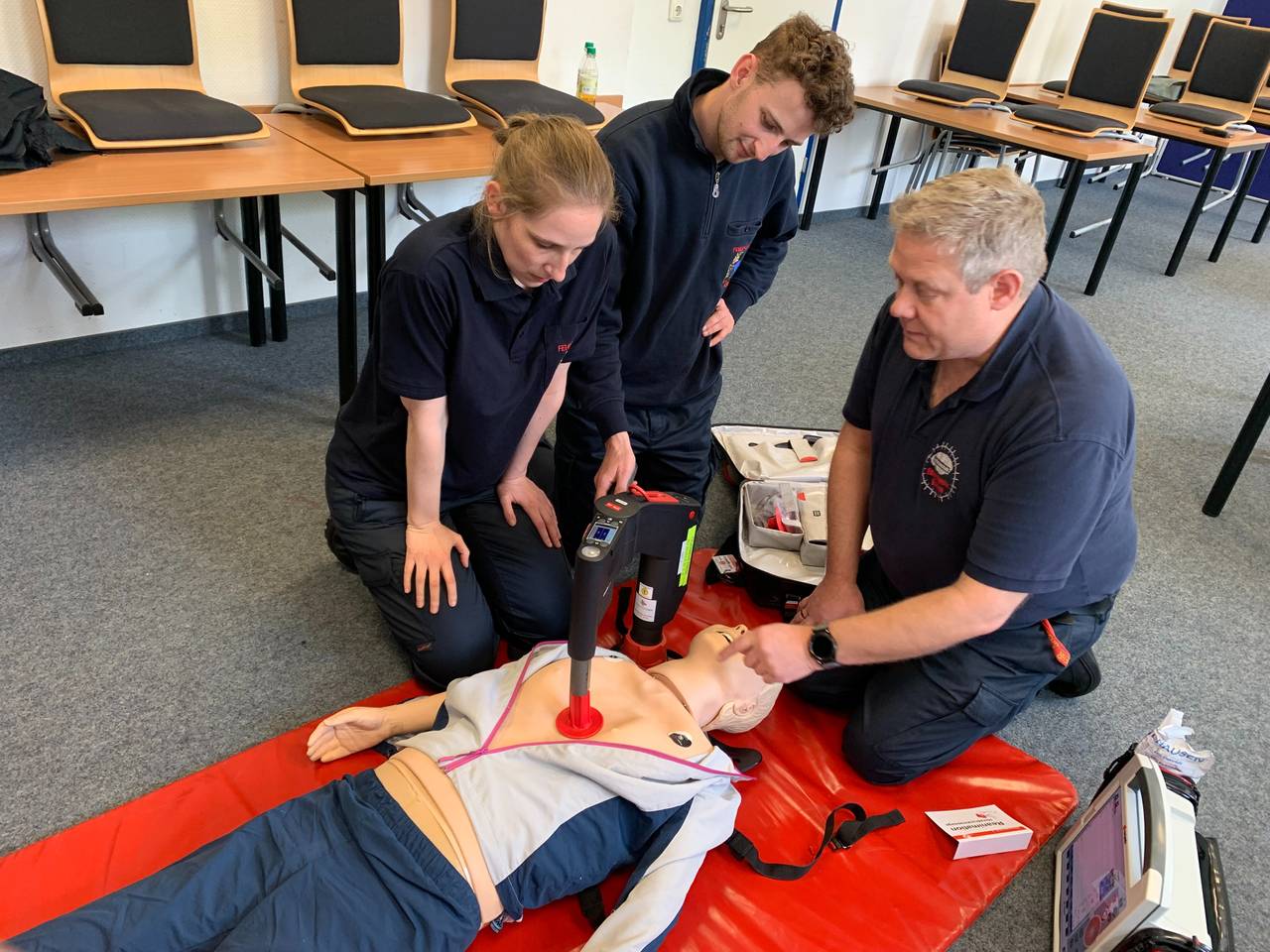 Unsere Frühschichtmoderatoren haben einige Stationen kennengelernt. Los ging es mit dem Einkleiden, denn wer bei der Feuerwehr arbeitet, muss gut geschützt sein. Neben der normalen Tagesdienstkleidung gibt es die Schutzkleidung für den Einsatz. Sie wiegt ungefähr 25 Kilo - also mal eben ein Drittel des eigenen Körpergewichts. Nach dem Umziehen haben die zwei bei einer Übung ein nicht ganz echt brennendes Auto gelöscht. Danach mussten sie eine Person aus einem Auto retten. Joshi durfte mit der Hydraulik-Schere eine Autotür durchtrennen. Larissa hat sich bei der Brandschutzübung einen Traum erfüllt. Sie wollte schon immer mal mit dem Feuerwehrschlauch Wasser spritzen. Natürlich sind die beiden mutig die Feuerwehrstange heruntergerutscht, die sicherer ist als die normale Treppe - und außerdem viel schneller. Von da aus ging es zum Rettungsdienst. Wie beatmet man Personen? Und welche technische Hilfe gibt es da mittlerweile?