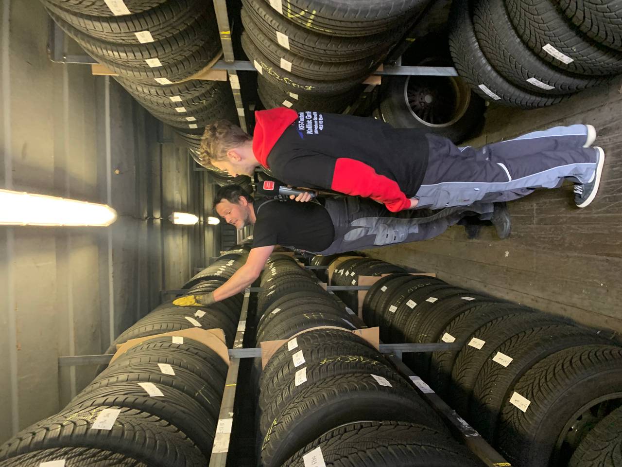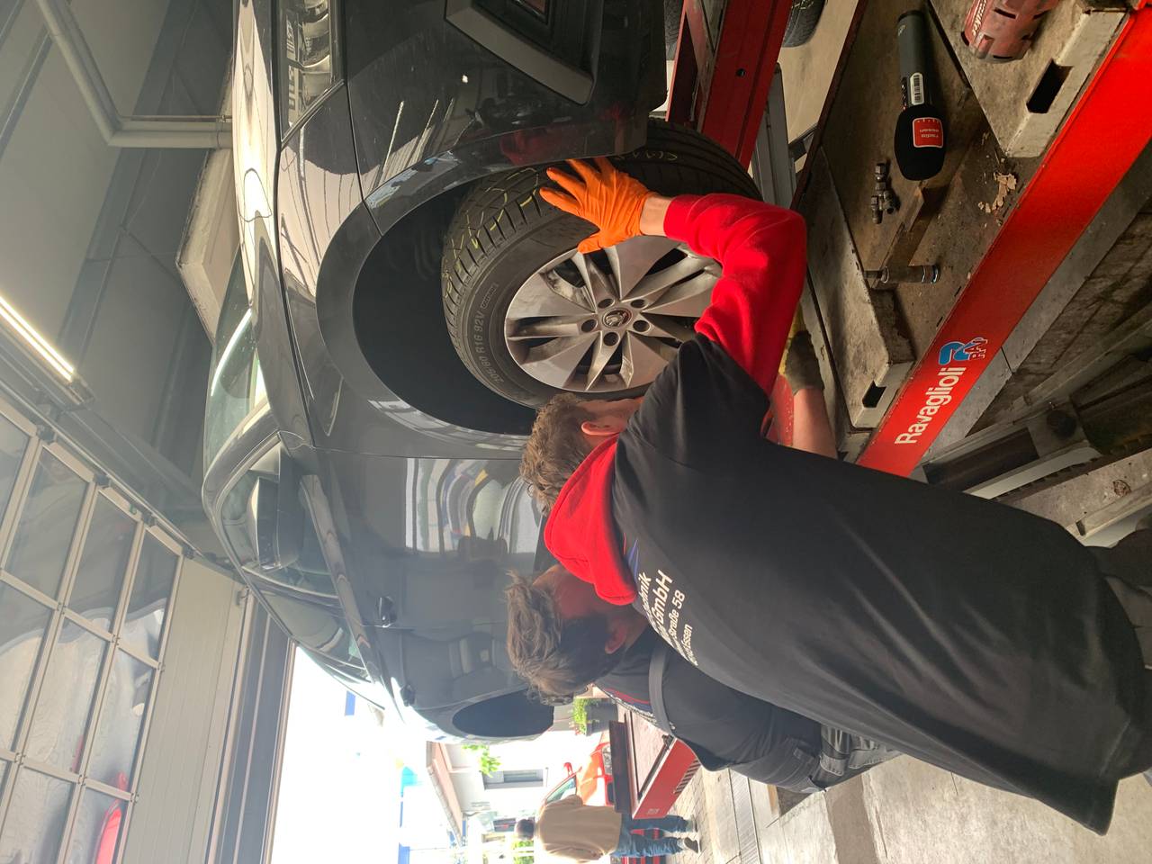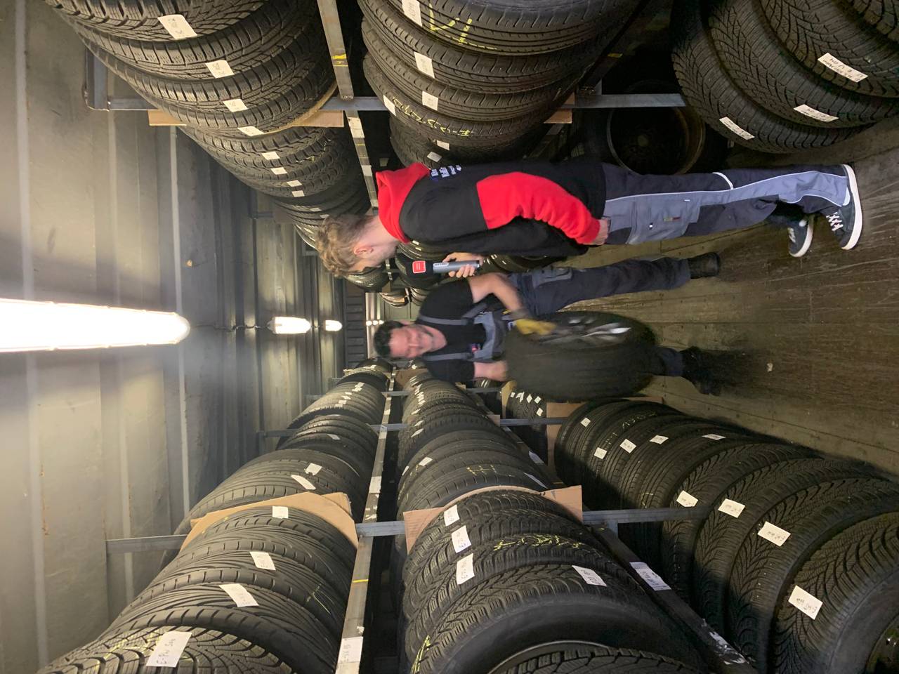 Die letzte Disziplin ist dann, einen Reifen zu wechseln. Dazu geht es ins Reifenlager - 10 bis 20 Kilogramm wiegt so ein Reifen - den rollt Joshi lieber von A nach B. Beim Reifenwechsel darf Joshi dann auch selbst ran - und das macht sogar richtig Spaß. Zum Abschluss gibt es noch ein Gespräch mit Jens Kallidat, dem Chef der Werkstatt. Das Ergebnis: Joshi hat sich gut gemacht und Aufgaben von einem vollwertigen Praktikanten übernommen!
