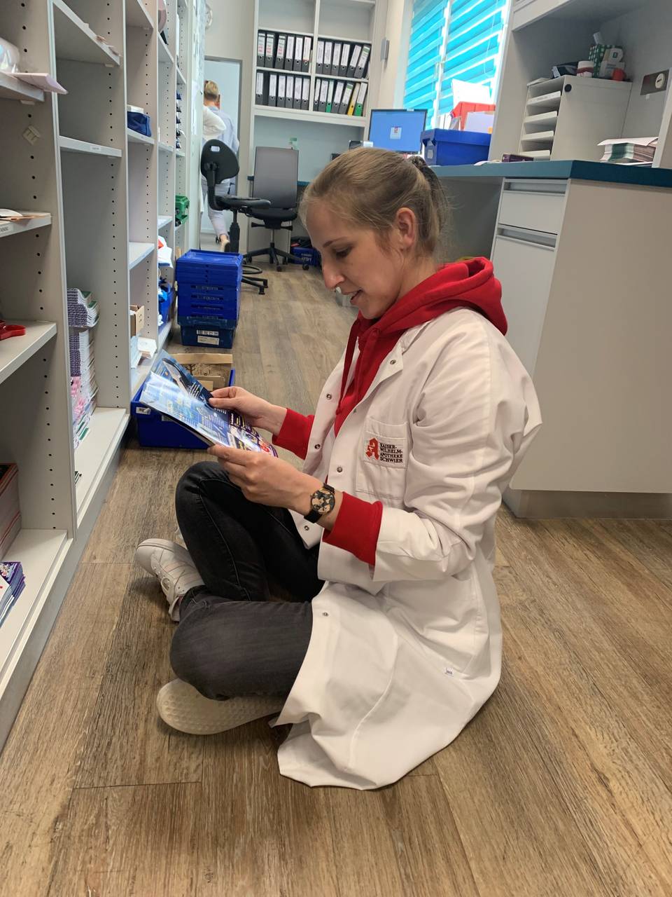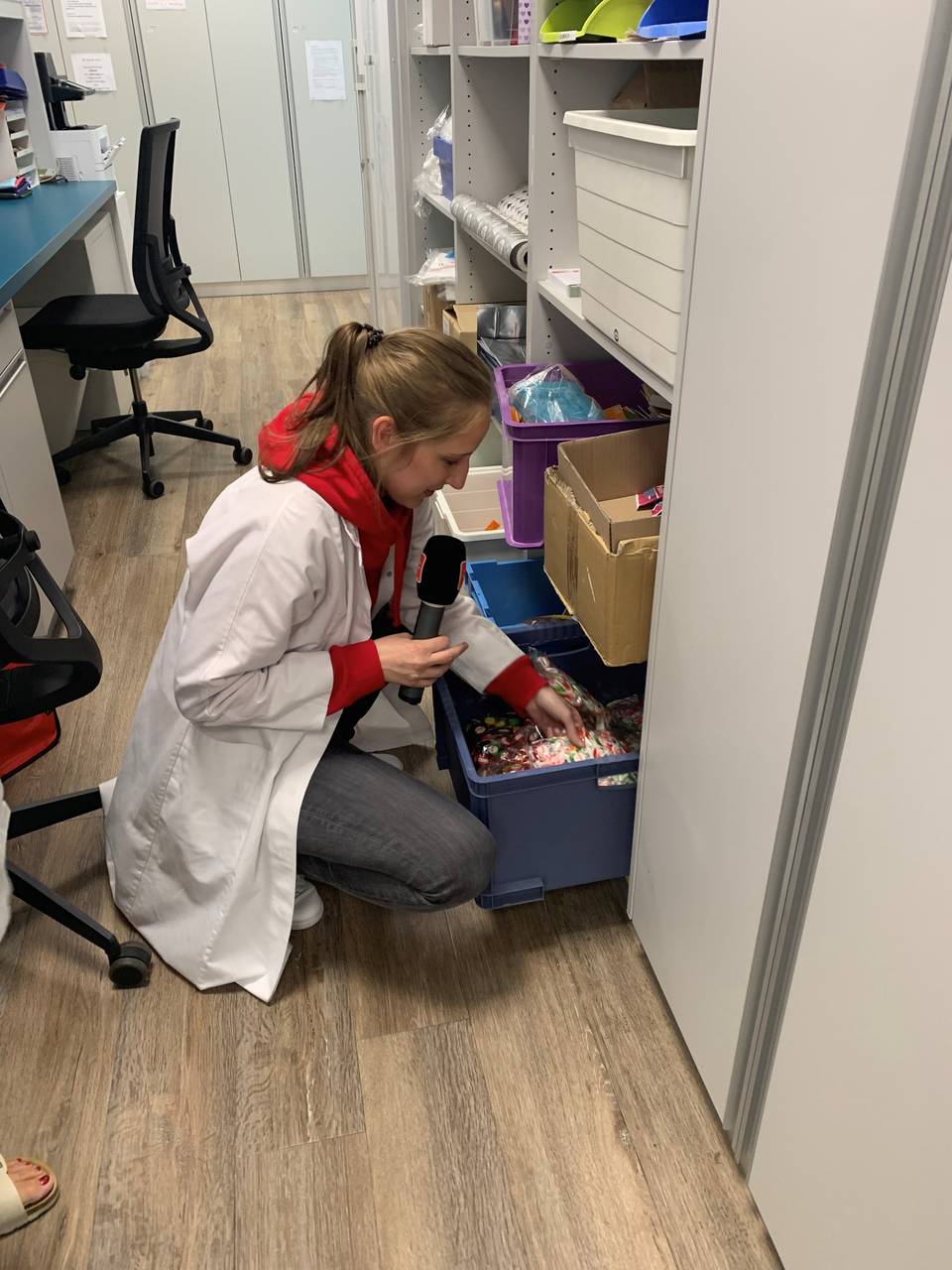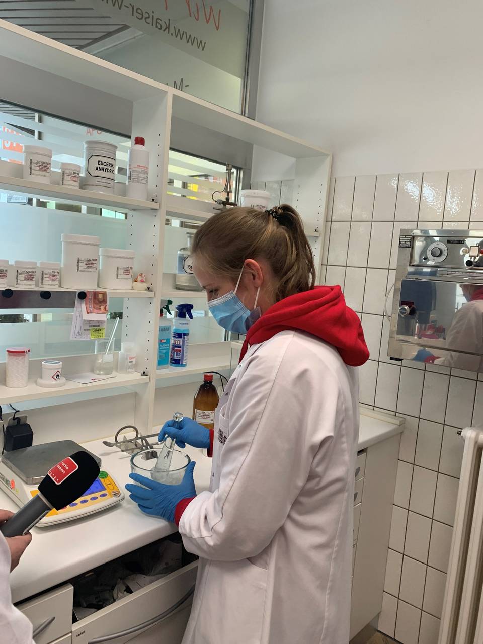 Larissa hinter den Kulissen einer Apotheke in der Radio Essen-Frühschicht
