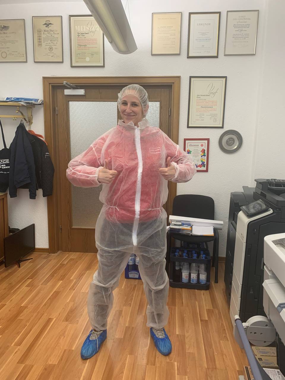 Für Larissa Schmitz ging es im nächsten Radio Essen-Frühschicht Praktikum in die Fleischerei Schmidt in Kray. Nach einer kurzen Begrüßung hieß es auch schon: Overall anziehen! Der schützt nicht nur den roten Radio Essen-Pullover, sondern soll auch verhindern, dass Dreck von der Straße in die Produktion kommt. Auch die Haare mussten unter einem Haarnetz verschwinden. Und dann ging es auch schon los.