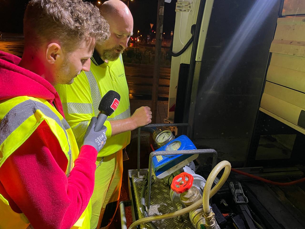 Joshis Nachtschicht startet um 22:30 Uhr in Stoppenberg. Mitarbeiter Olli erwartet ihn bereits. Zuerst gibt es eine kleine Einweisung und einen Plan für die Nacht. Geplant ist eine Kontrollfahrt nach Werden. Joshi soll überprüfen, ob eine wichtige Wasserleitung zwischen Werden und Kettwig dicht ist. Gut, dass es in der Nacht nur leicht nieselt. Wetterbedingungen spielen eine große Rolle für diese Kontrollen. Es darf nicht zu kalt und nicht zu warm sein, da das Ergebnis verfälscht werden könnte. Angekommen am Einsatzort drehen Olli und Joshi die Wasserleitung ab und „schieben“ ein Messgerät im Auto "dazwischen". Dafür wird die Wasserleitung an einer Stelle unterbrochen, über einen Schlauch durch ein Messgerät geschickt und an anderer Stelle wieder in den Boden gelassen. Mithilfe des Messgerätes kann der Druck geprüft werden und undichte Stellen gefunden werden. Wenn das der Fall ist, können diese ausgetauscht werden. Ob Joshi einen Wasserrohrbruch findet, hört Ihr im Beitrag.