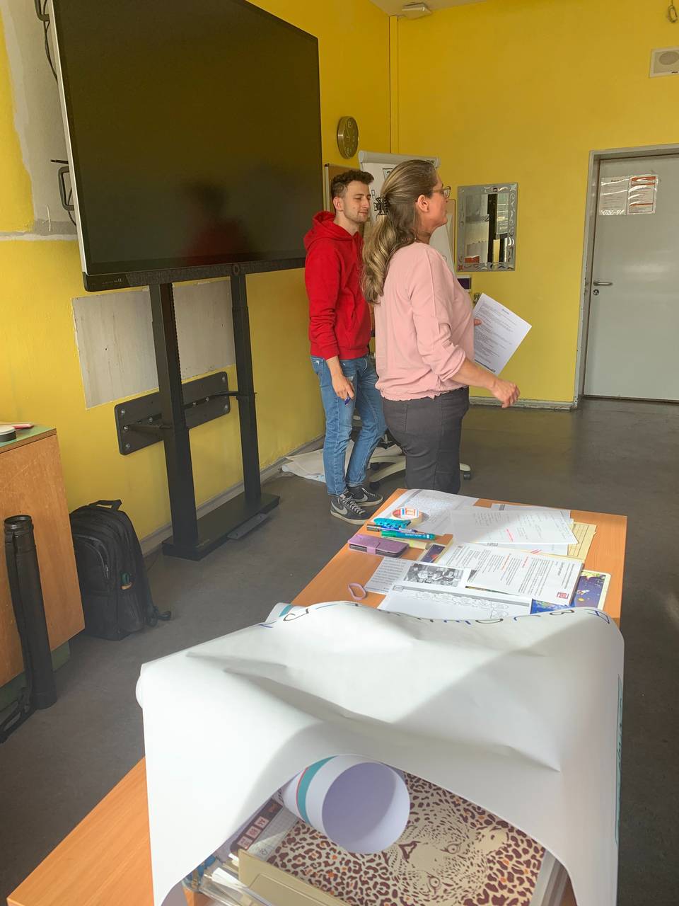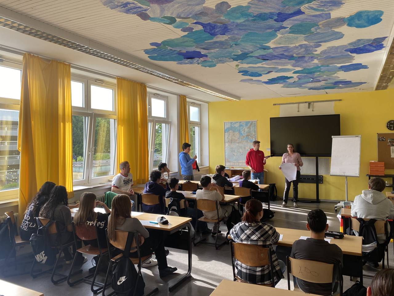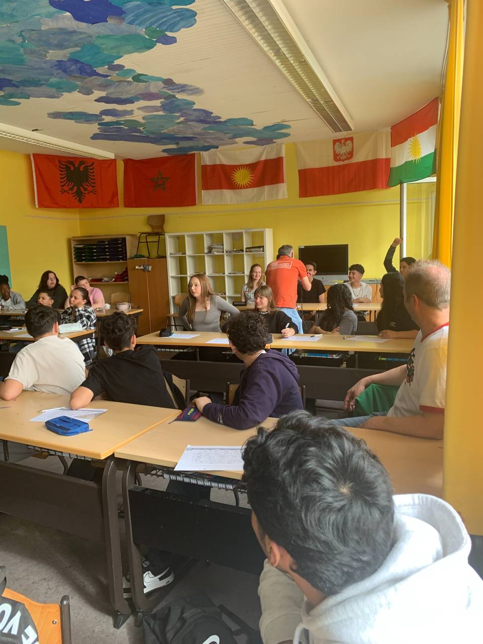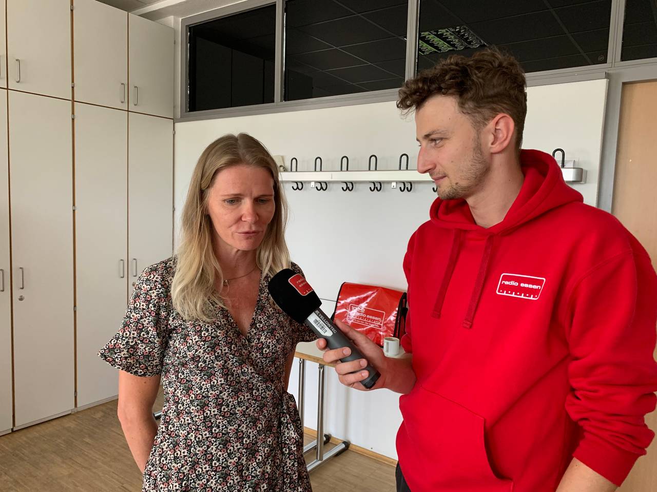 Dieses Mal musste Joshi sein Outfit nicht wechseln und konnte entspannt im roten Radio Essen-Pullover bleiben: Dieses Mal ging es mit dem Frühschicht-Praktikum zur Helene-Lange-Realschule nach Steele. Joshi war aber kein Lehrer für einen Tag, sondern Berufsberater. Stephanie Geldmacher von der Agentur für Arbeit hat ihn mit den Jugendlichen über Ausbildungsberufe sprechen lassen.