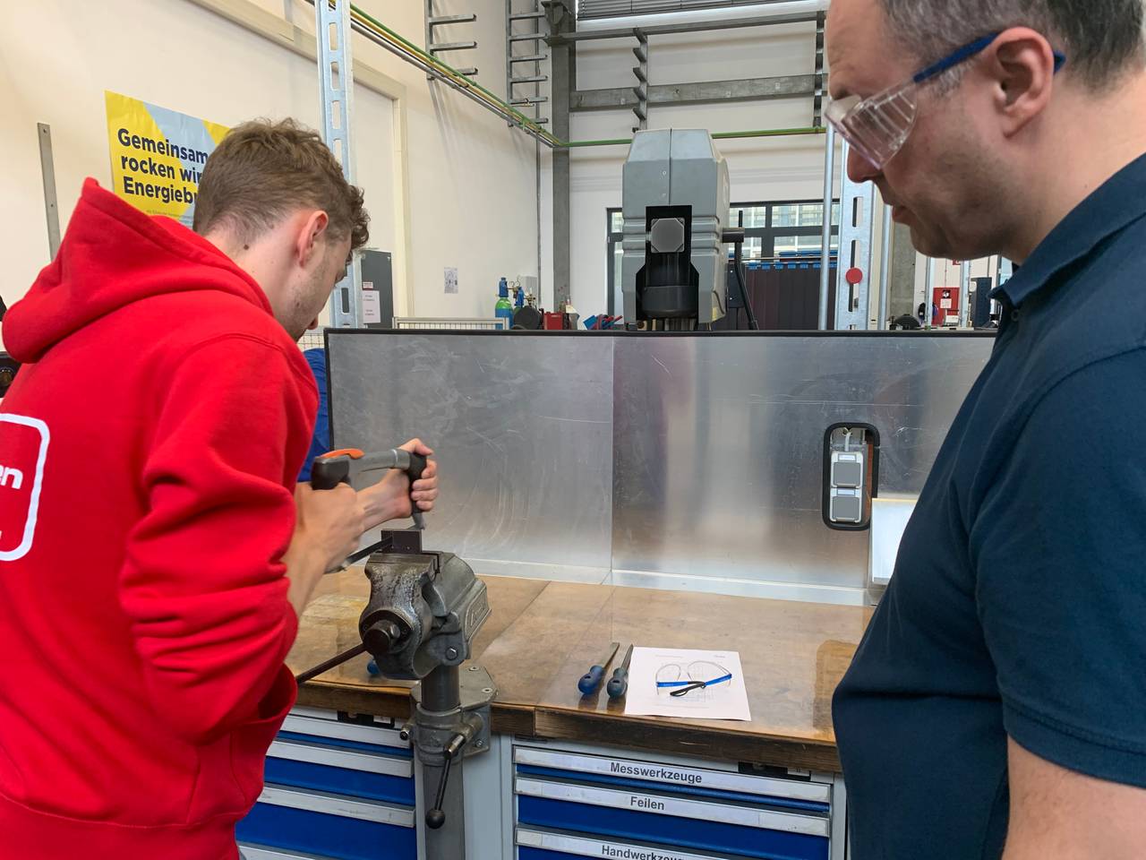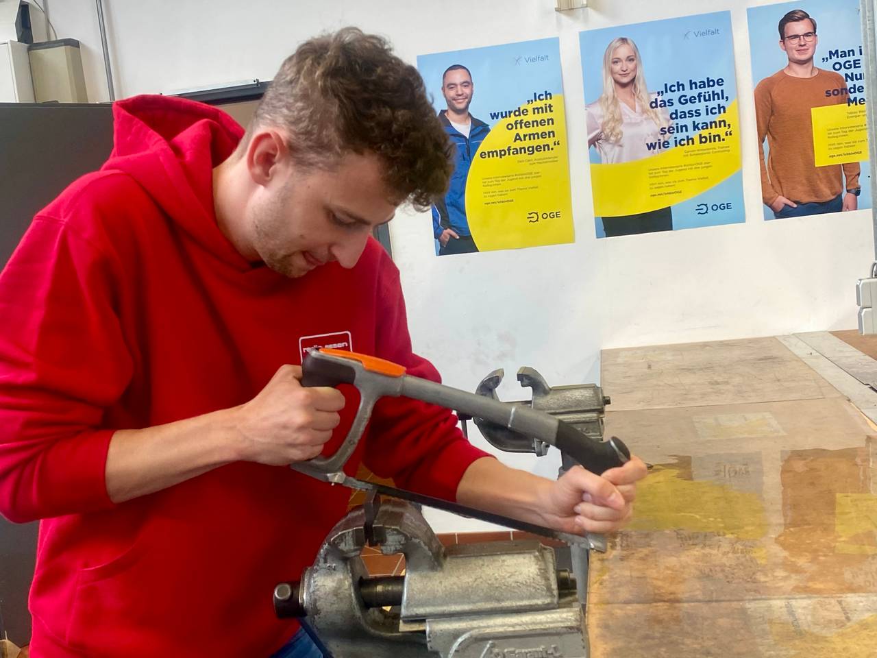 Die Open Grid Europe (OGE) sitzt in Essen-Altenessen und verwaltet das Gasnetz in ganz Deutschland. Von der Nordsee bis zum Bayrischen Wald liegen die Gasrohre, die ständig überprüft und auch mal erneuert werden. Dabei ist natürlich viel Technik benötigt. In Essen werden deshalb bei der OGE unter anderem Industriemechaniker ausgebildet. Und in der Ausbildungswerkstatt in Altenessen durfte unser Frühschicht-Moderator Joshua Windelschmidt einen kleinen Crash-Kurs absolvieren. Er durfte in seinem Frühschicht-Praktikum in die Welt der Industriemechaniker eintauchen und feilen, sägen, bohren, schweißen und an der großen Maschine drehen. Ausbildungsmeister Dirk Grins hat Joshi die wichtigsten Dinge gezeigt - und hatte dabei viel Geduld mit seinem Praktikanten.