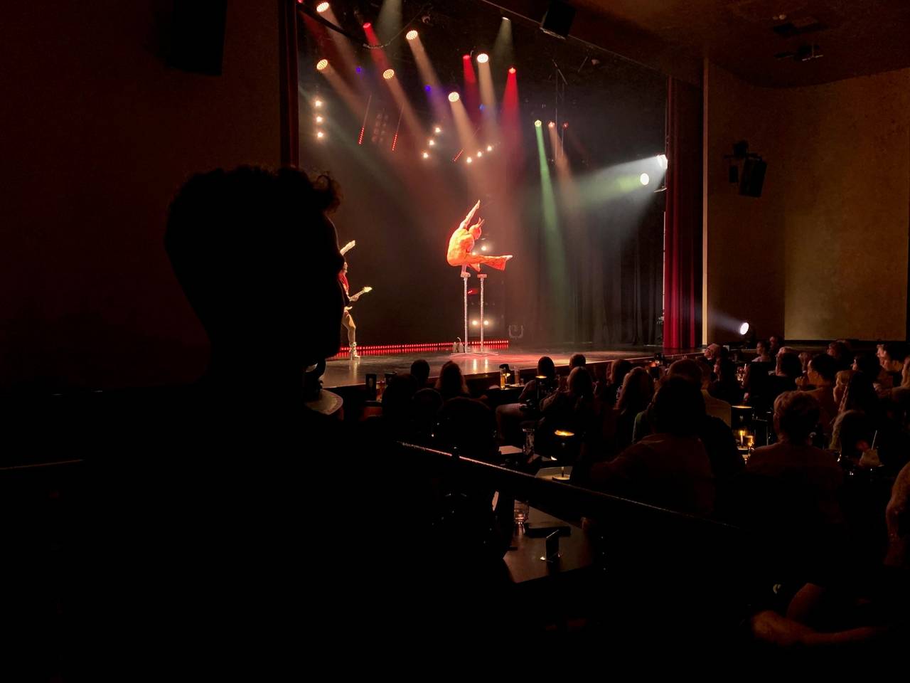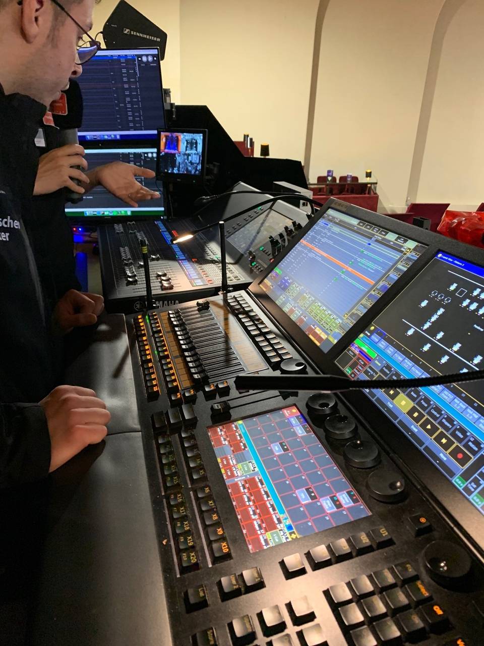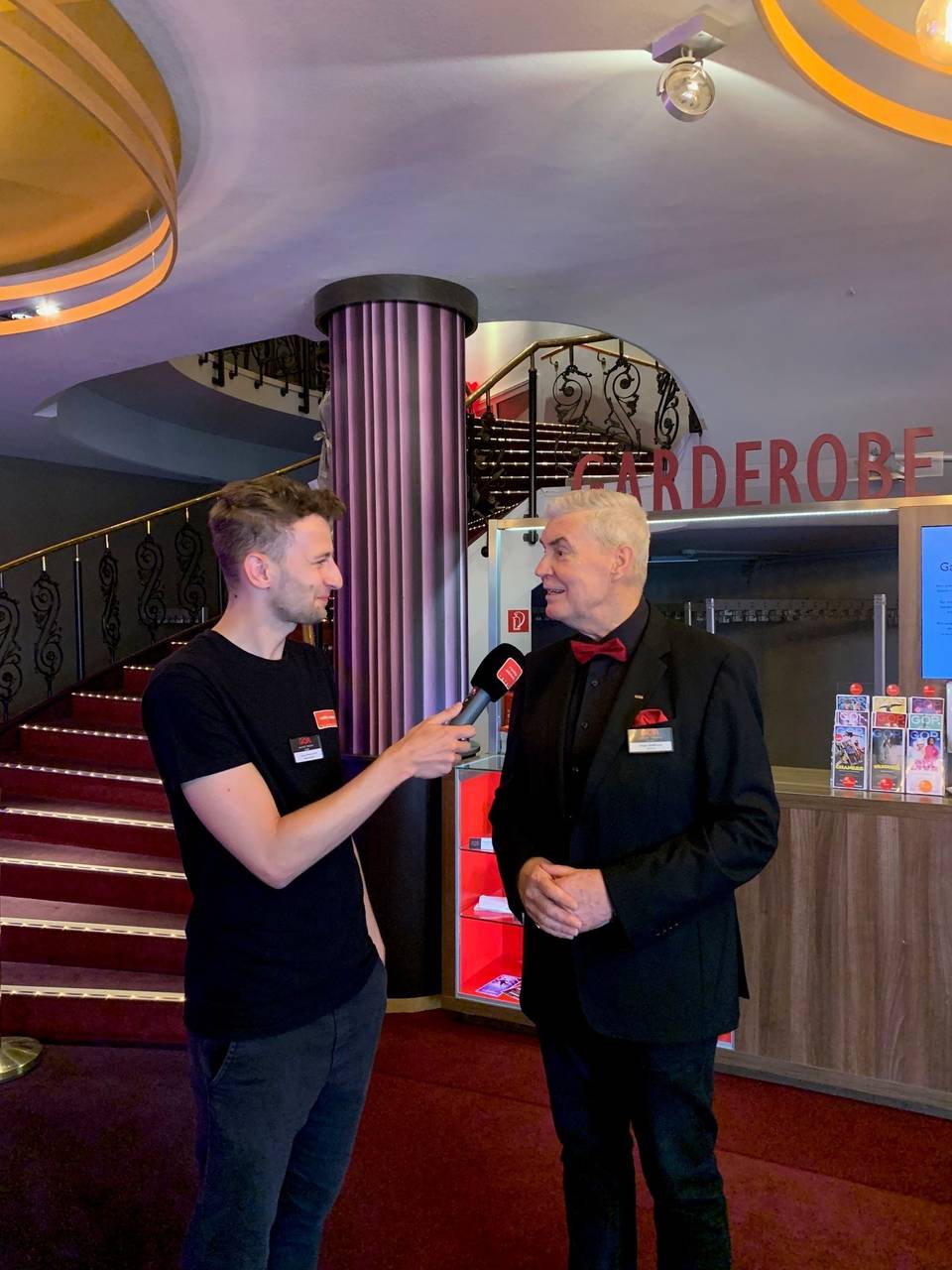 Jetzt musste Joshi aber schnell zurück zu Mikael – denn es gab noch eine Überraschung: Über einen Seitenbeamer wurde vor der Show ein kleiner Gruß für ihm im Saal gezeigt! Als nächstes durfte er in der Küche zuschauen – da geht es ganz schon wuselig zu. Der nächste Job für ihn war der Einlass: Hier sollte er den Gästen ihre Tische zeigen. Nachdem er sich das System einmal gemerkt hatte, war das auch kein Problem mehr für ihn. Serviceleiter René war insgesamt sehr zufrieden. Jetzt aber schnell nochmal zu Mikael: Die Show begann nämlich – und Joshi durfte den Technikern am Anfang etwas zuschauen.