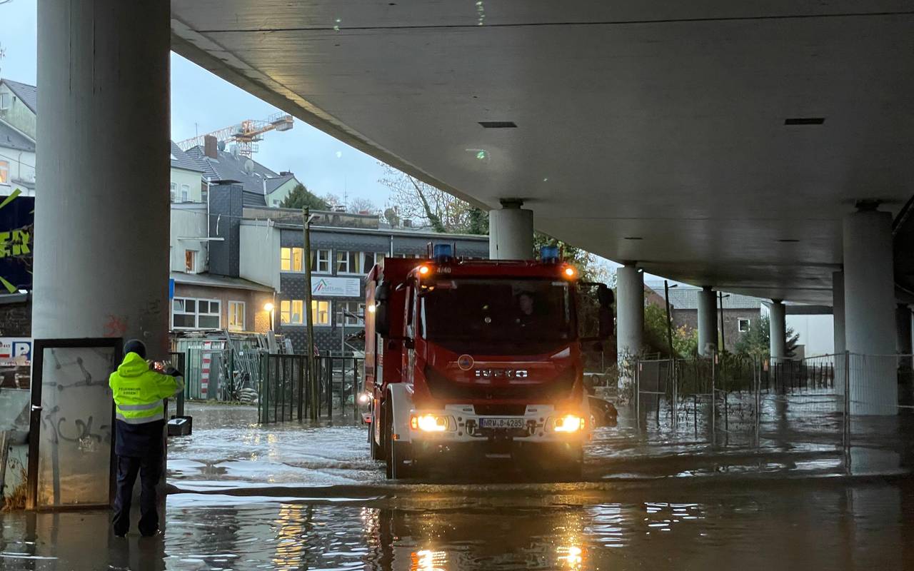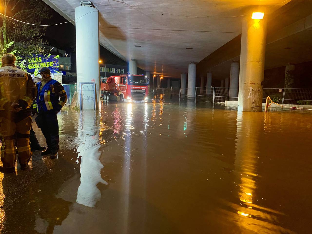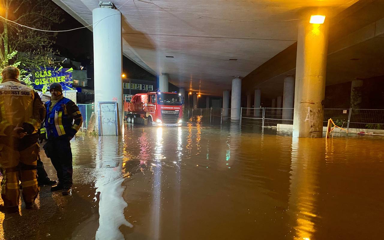 Dauerregen in Essen: Deilbach tritt über - Feuerwehr im Einsatz