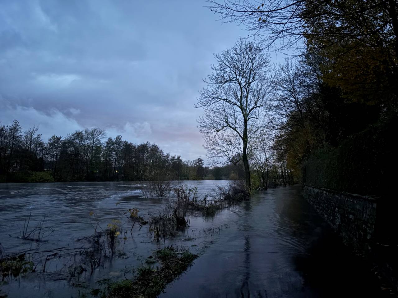 Der Dauerregen in Essen sorgt am Dienstag (19. November) wieder für Probleme am Deilbach. Der tritt langsam über die Ufer. Die Polizei warnt alle Autofahrer.