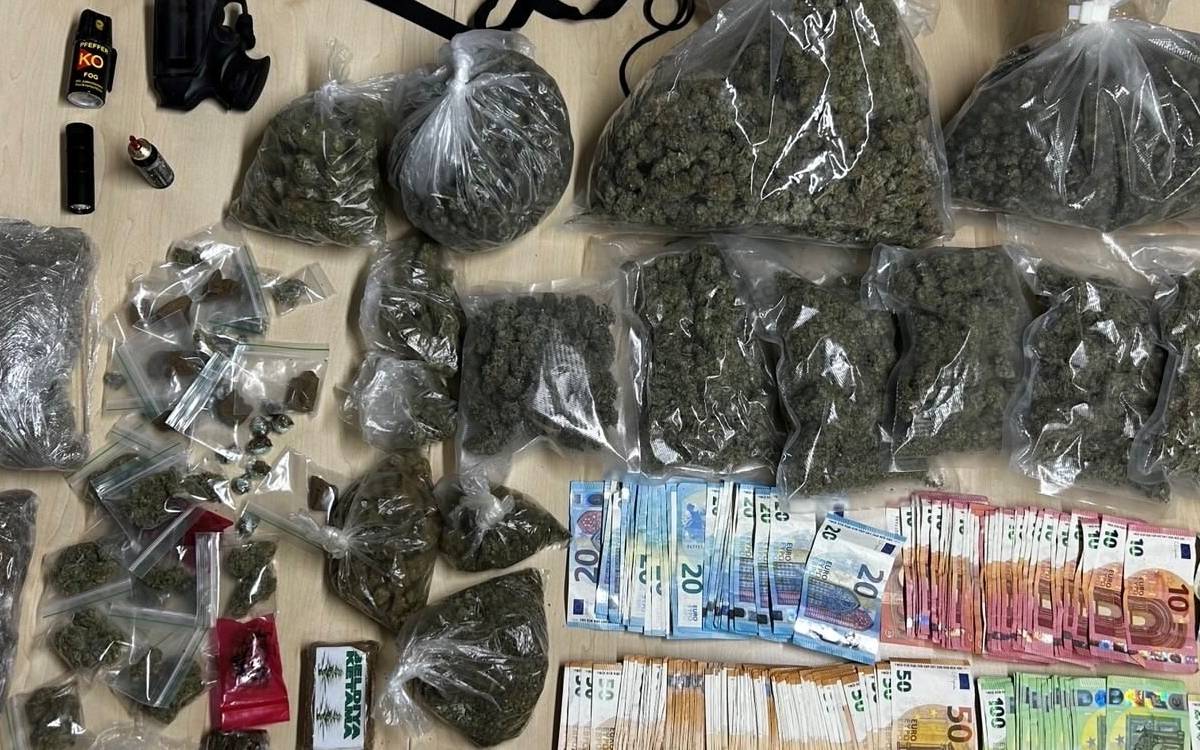 In seiner Wohnung fand die Polizei Bargeld in vierstelliger Höhe, rund 2 Kilo Cannabis und mehrere Gramm Haschisch und Kokain. Außerdem eine Machete, Pfefferspray und eine Schreckschusswaffe.