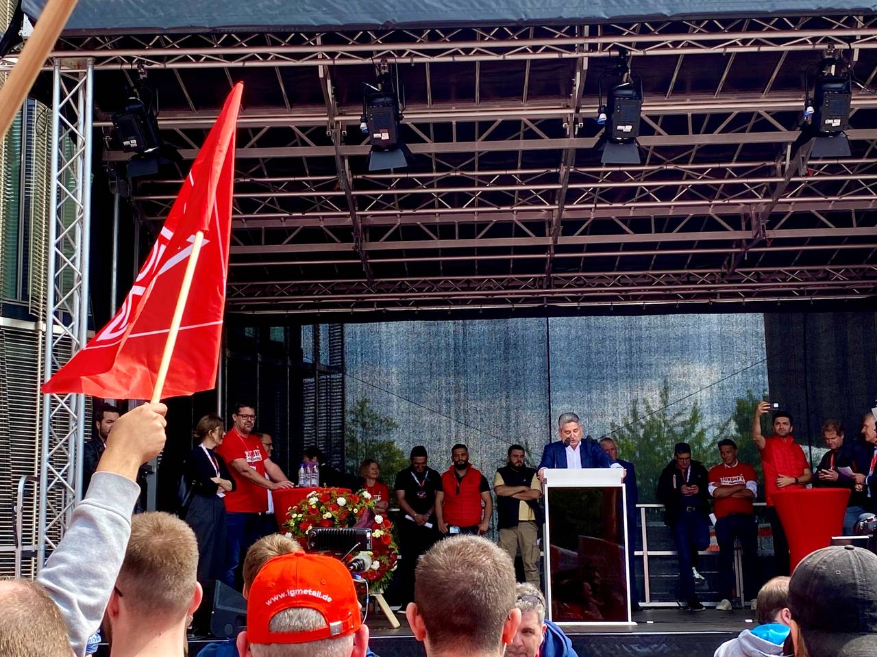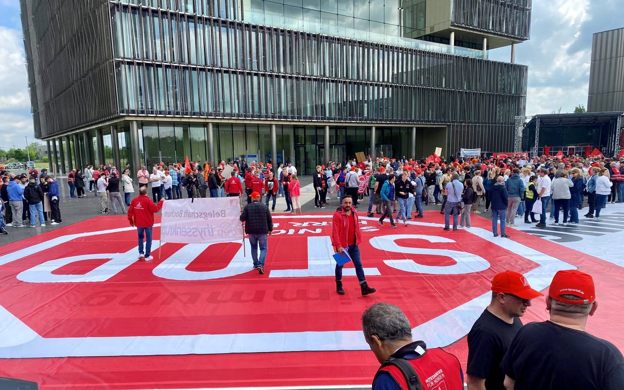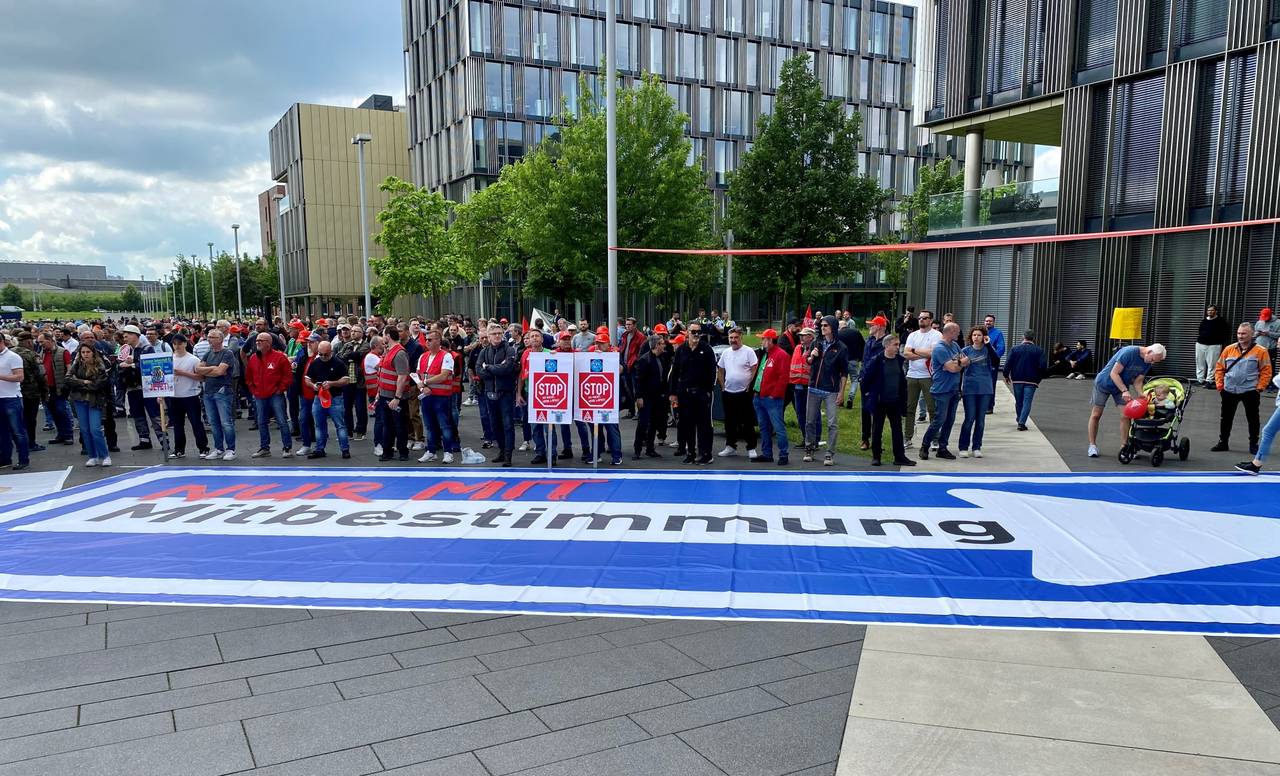 In Essen war am Donnerstag (23. Mai) Aufsichtsratssitzung bei der thyssenkrupp AG im Westviertel. Da sollten weitere Entscheidungen fallen, wie es mit dem Konzern weitergeht. Schon vor Wochen hat Konzernchef Miguel López Einschnitte in der Stahlproduktion angekündigt. Was das aber genau für die Beschäftigten bedeutet, darüber gab es keine genauen Aussagen. Die Stahlkocher sind deshalb sauer und sind auf die Straße gegangen. 5000 Beschäftige von thyssenkrupp versammelten sich am Vormittag vor der Zentrale. Die Gewerkschaft IG Metall hatte zum Protest aufgerufen. Am Vormittag hat sich auch der Konzernchef den Beschäftigten gestellt und erklärt, was sie von ihm erwarten können. Die Kundgebung ging von 11 bis 13 Uhr. Das die Bilder von der thyssenkrupp-Demo.