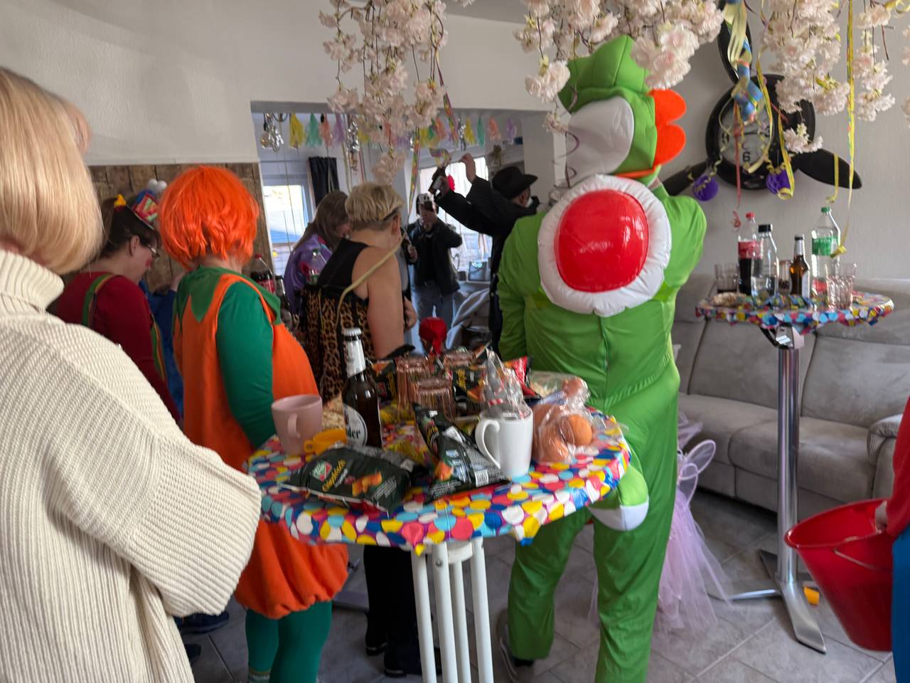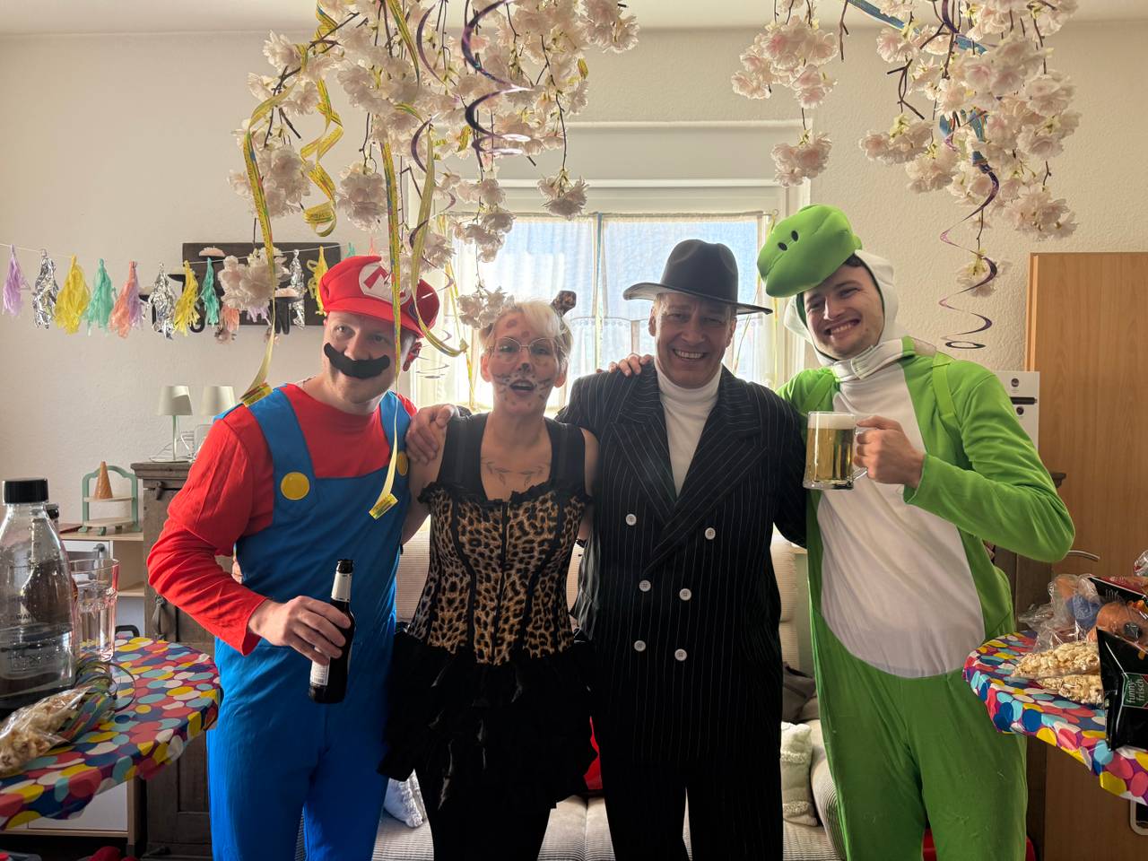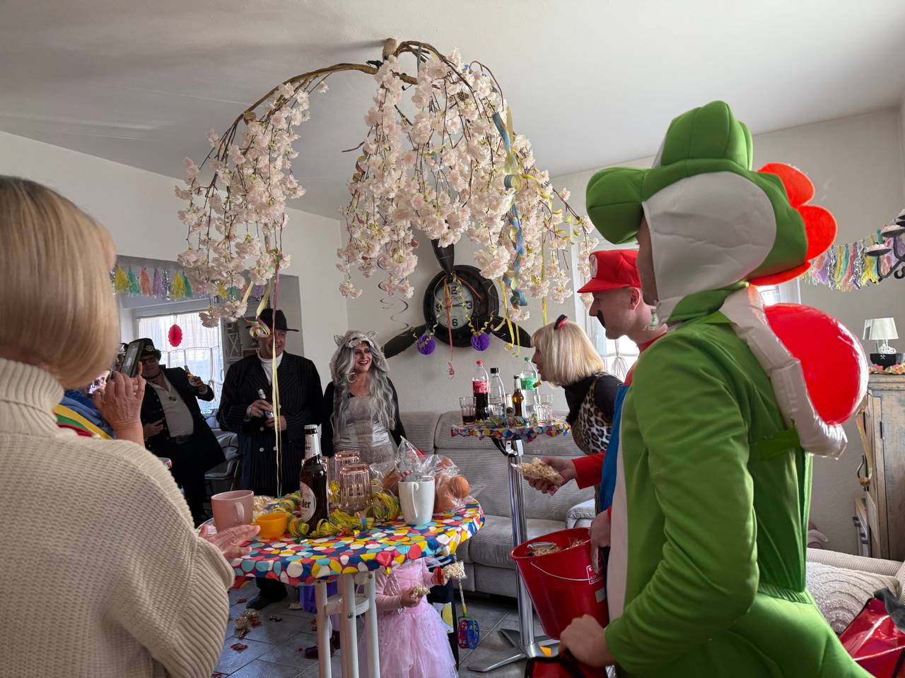 Zum Abschluss gab es noch ein weiteres Highlight. Tina wurde 61 Jahre alt und von ihrer Familie und Freunden mit einer Geburtstagsparty überrascht. Und als besondere Partygäste sind auch Joshi und Mario mit dem Kamelle-Express noch vorbeigekommen! Die Stimmung war gut, Tina durchaus emotional als wir durch die Tür gekommen sind.