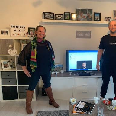 Nina (l.) lernte Philipp bei einem Online-Coaching kennen. Der Trainer aus Bredeney bietet sein Training unter anderem in Firmen an und begeistert die Teilnehmer:innen vor allem mit seiner lockeren Art. Bei Nina schaffte er es gerade in der Corona-Zeit wieder für Motivation zu sorgen. Philipps Tipps dabei: klare Sportzeiten im Alltag, viel Bewegung an der frischen Luft und gute Ernährung.