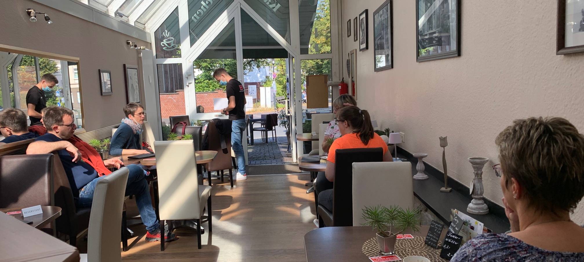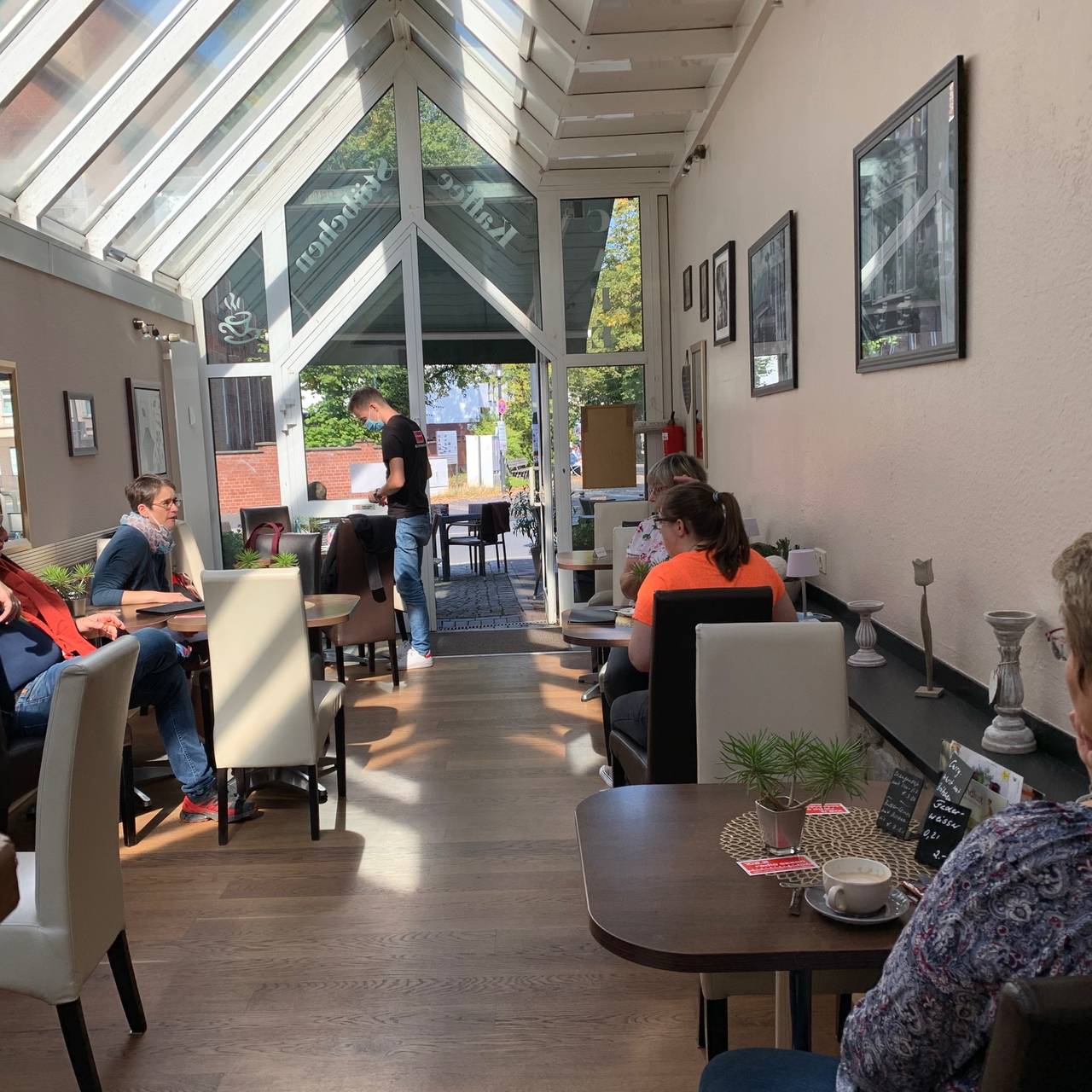 Eigentlich hat Karina jeden Sonntag tanzen. Aber da Ihr Tanzpartner im Urlaub ist, konnte sie bei uns mitmachen.Familie Küper hat zum ersten Mal mitgemacht und uns direkt gefunden!Es gab viel Kuchen zur Auswahl, alles selbstgemacht.Klein aber fein: Unser Versteck das Kaffeestübchen in Heisingen