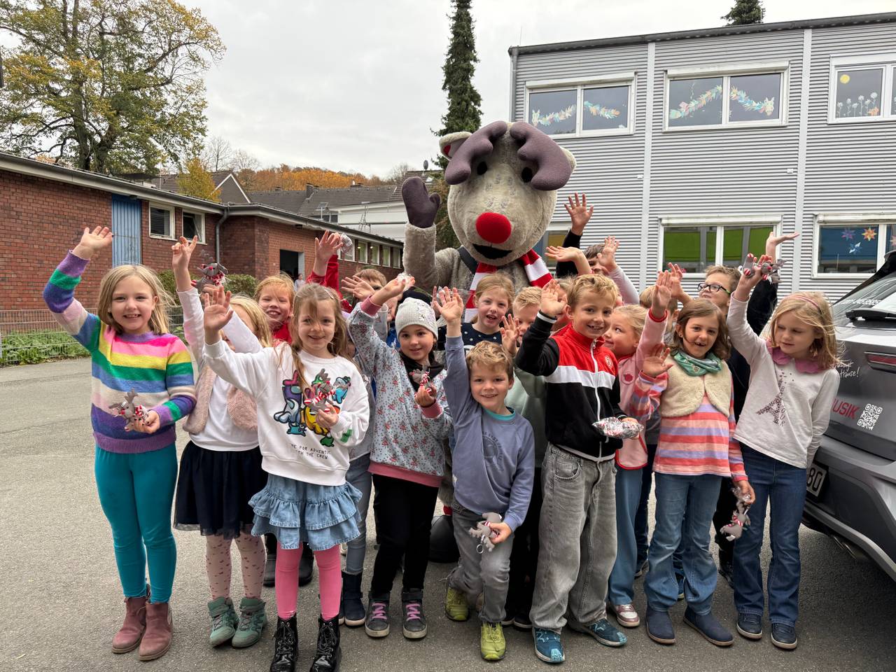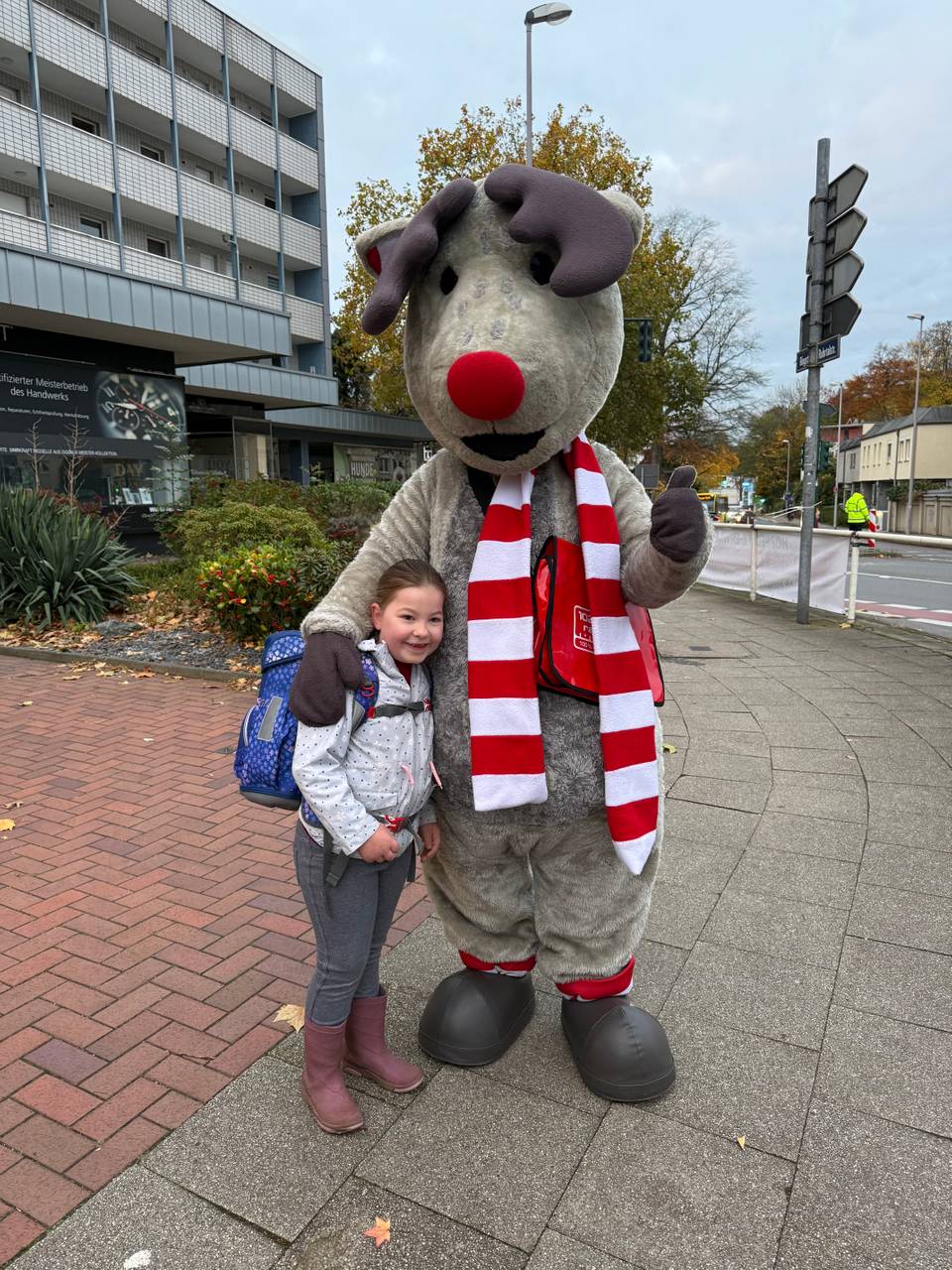 Das hat sich Radio Essen-Stadtreporter Timm Schröder zusammen mit Euch angeschaut. Bei einigen Terminen war auch unser Maskottchen, der lustige Elch Emil dabei. Dazu gab es für alle Kinder unseren kleinen leuchtenden Elch Emil als Geschenk - für mehr Sicherheit auf dem Weg durch die dunkle Jahreszeit. Unterstützt wurden wir in diesem Jahr von der Polizei Essen und der Verkehrswacht. Hier geht es zu unserer Aktion aus dem vergangenen Jahr.