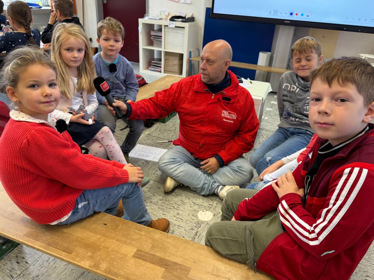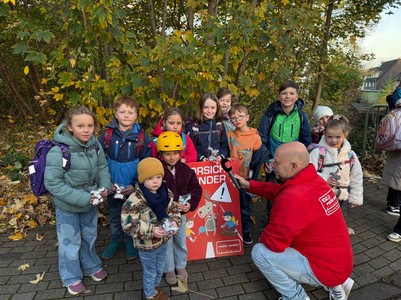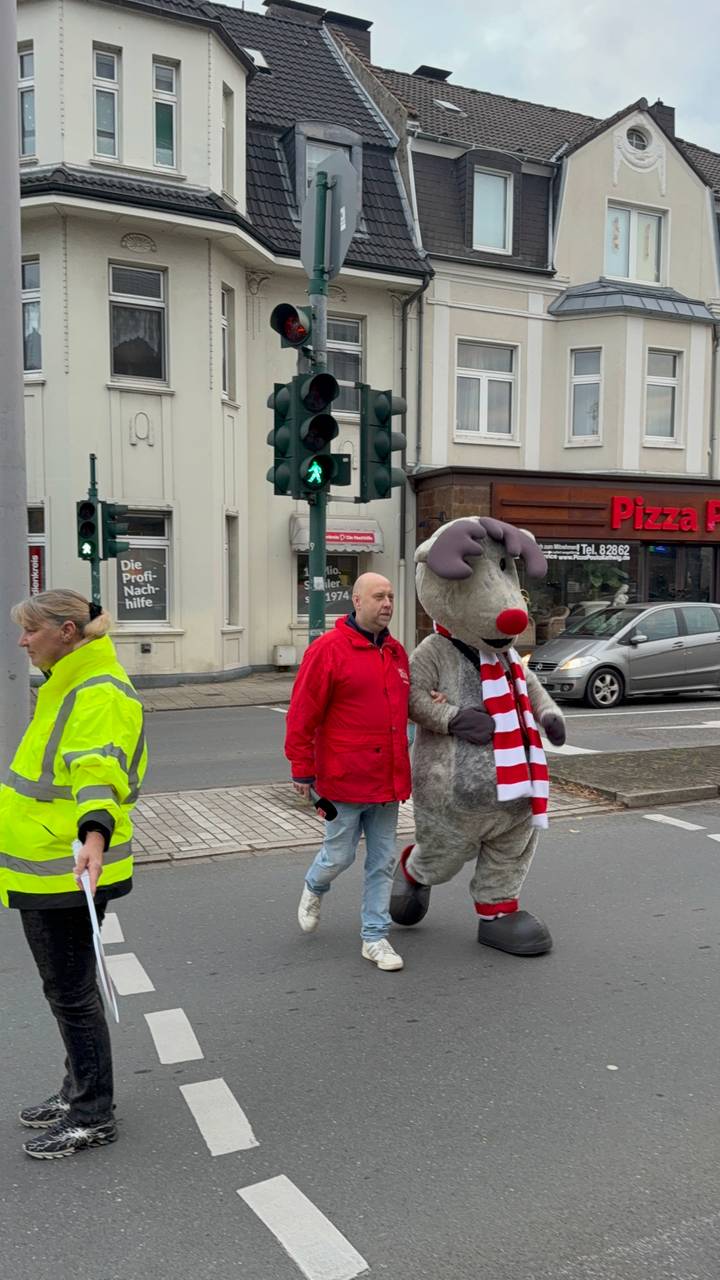 Elena und Sabine Dreesen machen sich Sorgen um die Kinder, die jeden Tag auf dem Weg zur Schule über die große Kreuzung unterhalb der historischen Altstadt von Kettwig müssen. Gegen 7:45 Uhr ist hier sehr viel los. Es wird gehupt, gedrängelt und auch nicht immer sehr gut aufgepasst. Einige Eltern versuchen seit ein paar Monaten als Schülerlotsen in ihren gelben Jacken Unfälle zu verhindern. Dabei können sie sich von manch einem Autofahrer ganz schön was anhören. Während unserer Aktion gibt es aber auch Lob von anderen Fußgängern. So engagierte Eltern gibt es auch in Kupferdreh an der Josefschule. Hier ist die Ampelkreuzung unterhalb des Schultores speziell kurz vor dem ersten Klingeln sehr gefährlich. Dann ist besonders viel los. Die Kinder der Koala-Klasse haben aber auch noch andere Probleme auf dem Weg zur Schule. Darüber sprechen sie mit Radio Essen-Stadtreporter Timm Schröder. Vorher gab es für alle Kinder unsere leuchtenden Emils und auch der große Emil war für eine Runde Kuscheln in der Klasse.