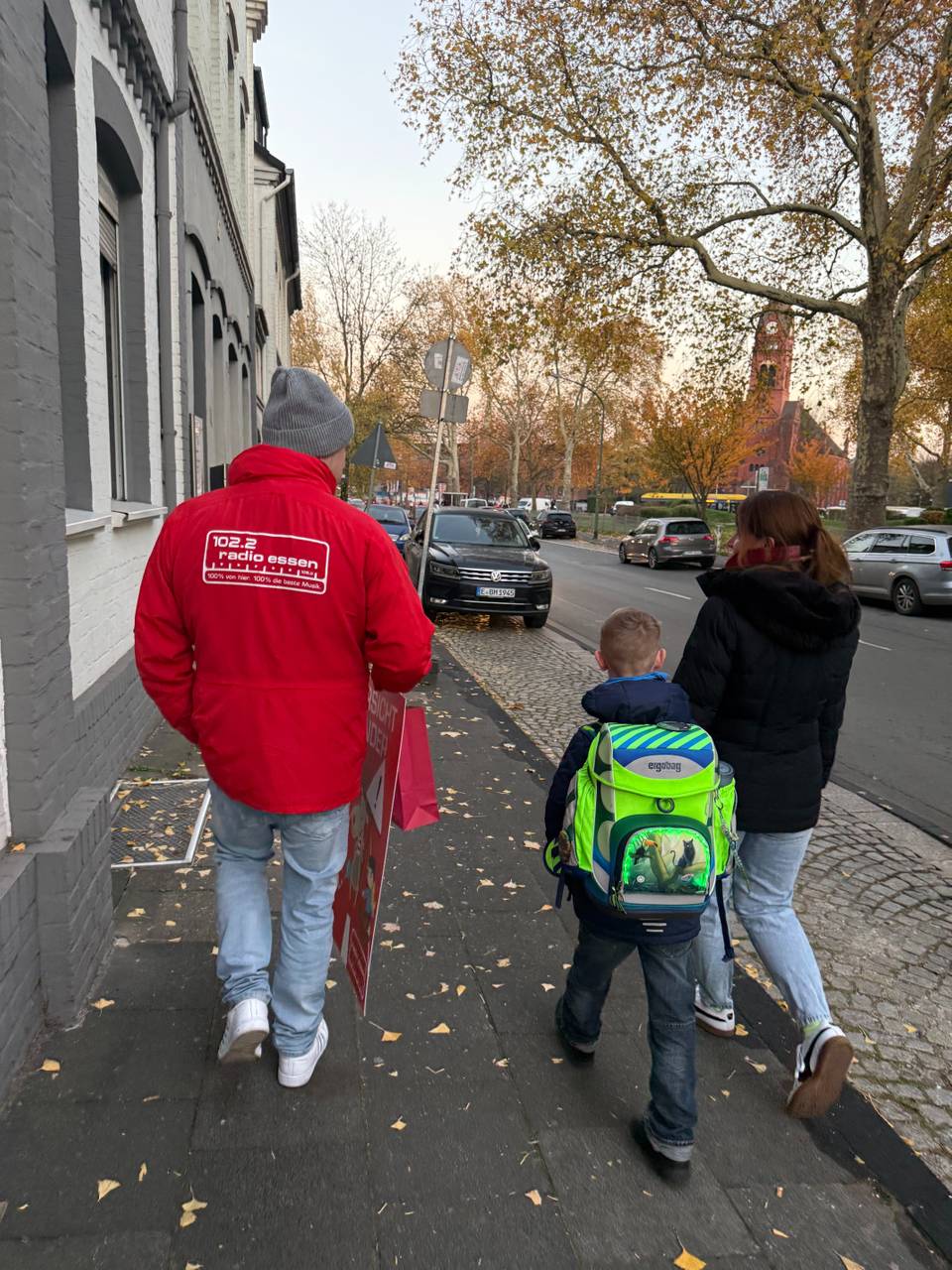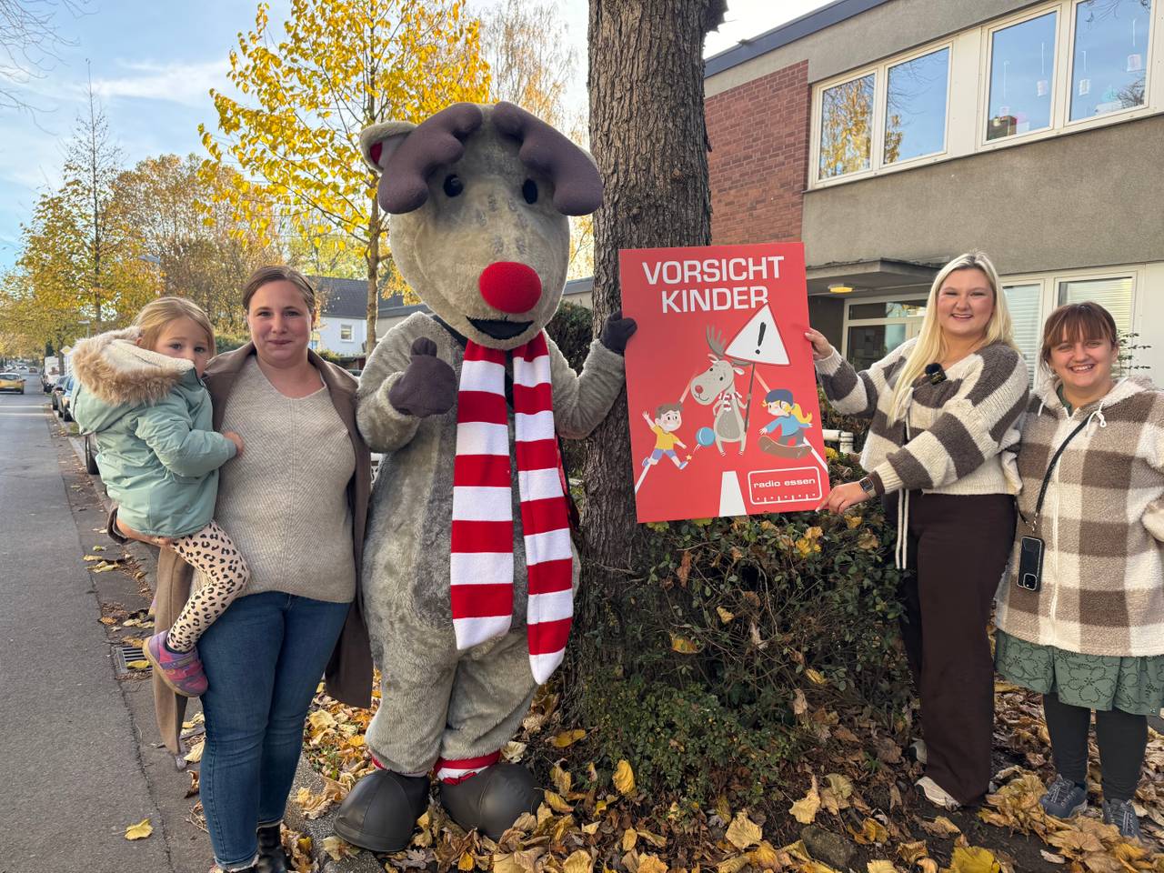 Jennifer zeigt Radio Essen-Stadtreporter Timm Schröder eine der bisher gefährlichsten Ecken in Essen. Es geht um die Kreuzung an der Dellwiger Straße Ecke Wertstraße inklusive Gleisschleife und zwei Bushaltestellen. Das Problem sind rasende Autos, die auch gerne die Fußgängerampel ignorieren. Dazu liegt eine der Bushaltestellen auf der anderen Straßenseite. Dorthin gibt es keine Ampel, keinen Zebrastreifen und noch nicht mal einen Bürgersteig. Das ist nicht nur morgens vor dem Schulstart sehr gefährlich. Auch in Karnap müssen die Kinder und ihre Eltern sehr aufpassen. In der Stinnesstraße vor dem Familienzentrum Birkenlund ist eigentlich eine 30er Zone. Daran halten sich aber nur wenige. Auch viele LKW brettern durch das Wohngebiet. Zusammen mit Kita Chefin Marina hängen wir unsere "Vorsicht Kinder"-Schilder auf und Emil verteilt seine reflektierenden Stofftiere.