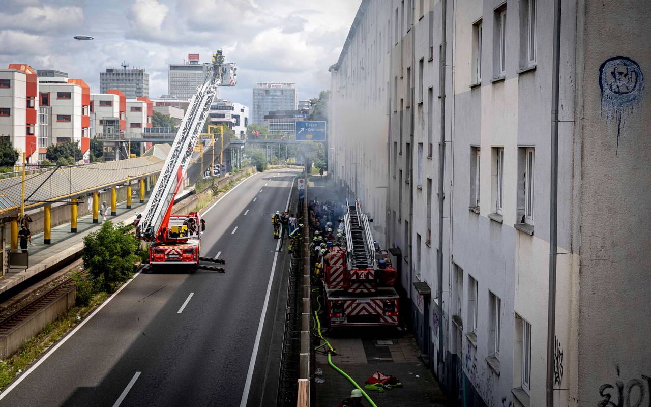 Dramatischer Brand in Essen - Drehleiter auf der A40
